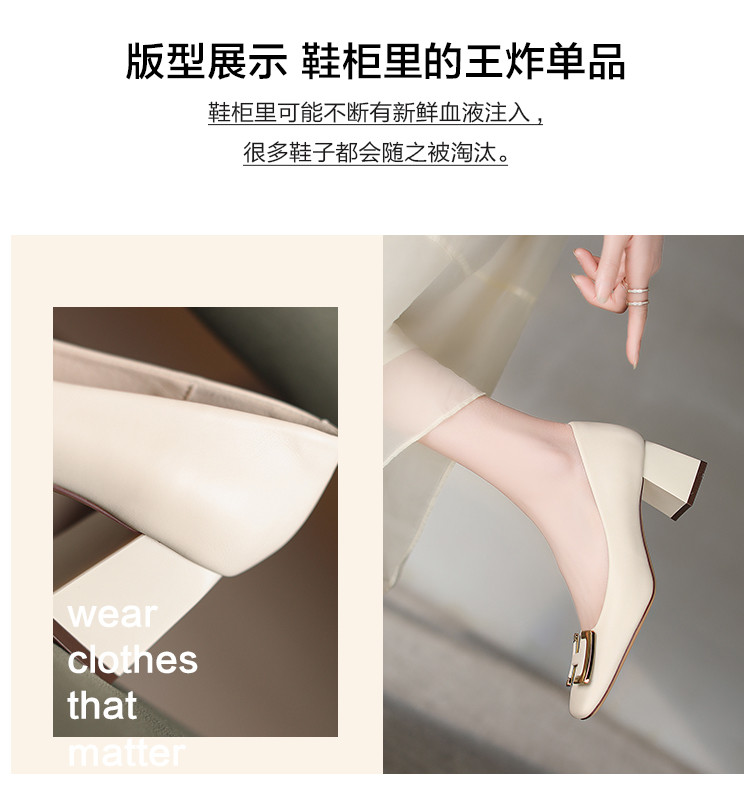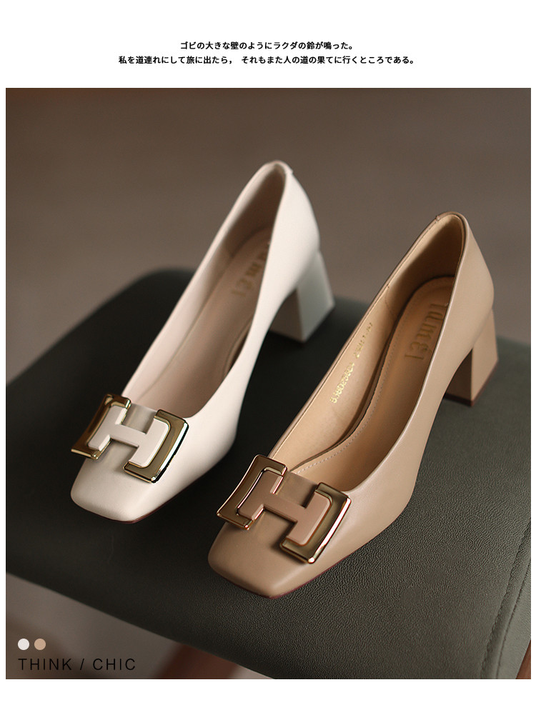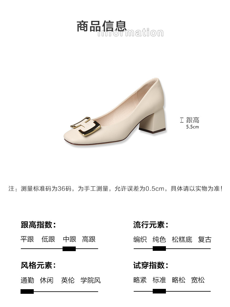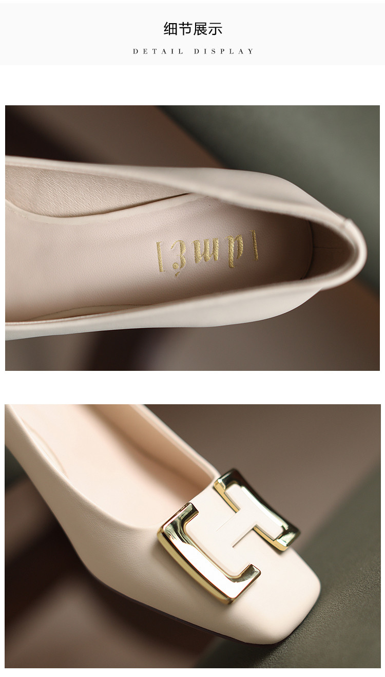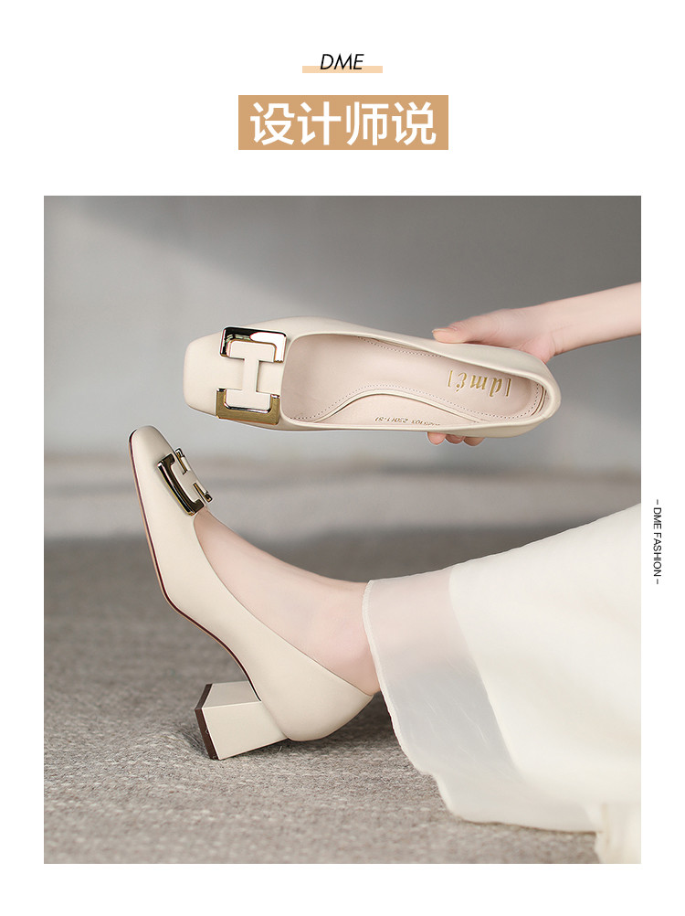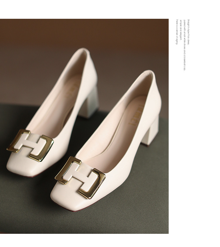 2023春季新款简约通勤方头金属H字母扣单鞋女