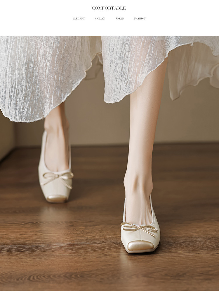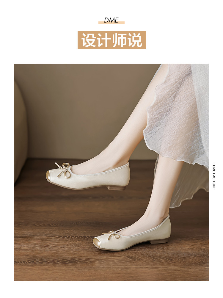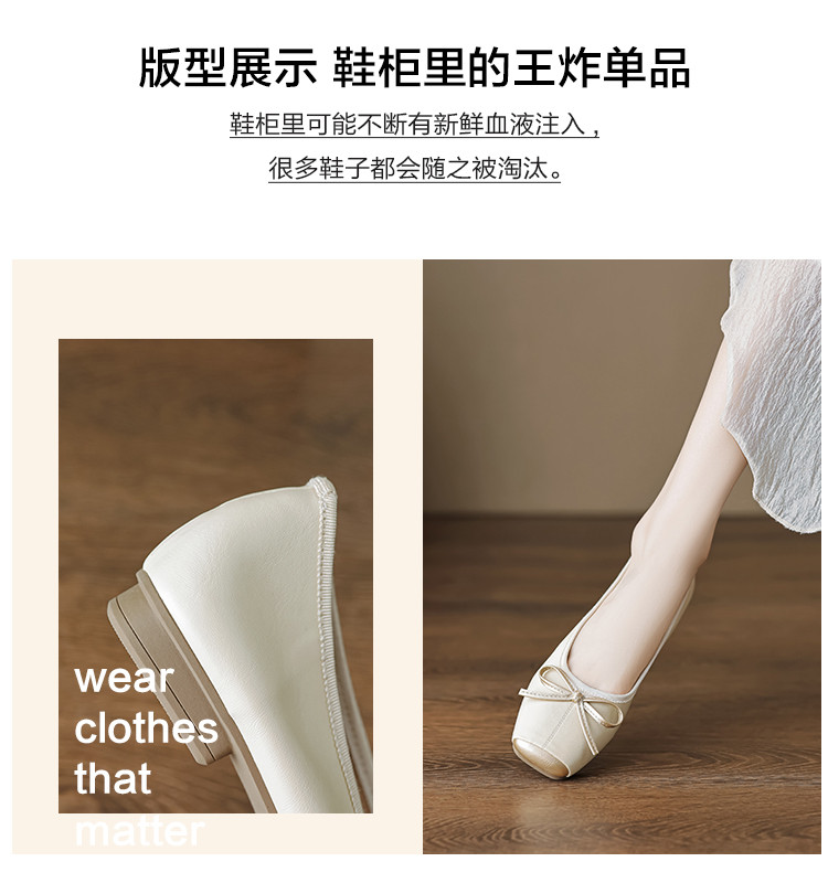 2024夏季甜美蝴蝶结拼色小方头舒软百搭日常通勤女单鞋