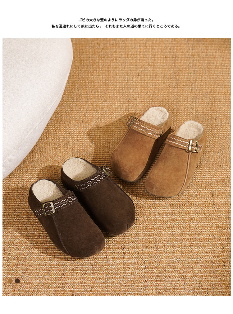 【游牧通勤】25秋冬百搭日常民族风刺绣软底鞋厚底勃肯毛毛拖