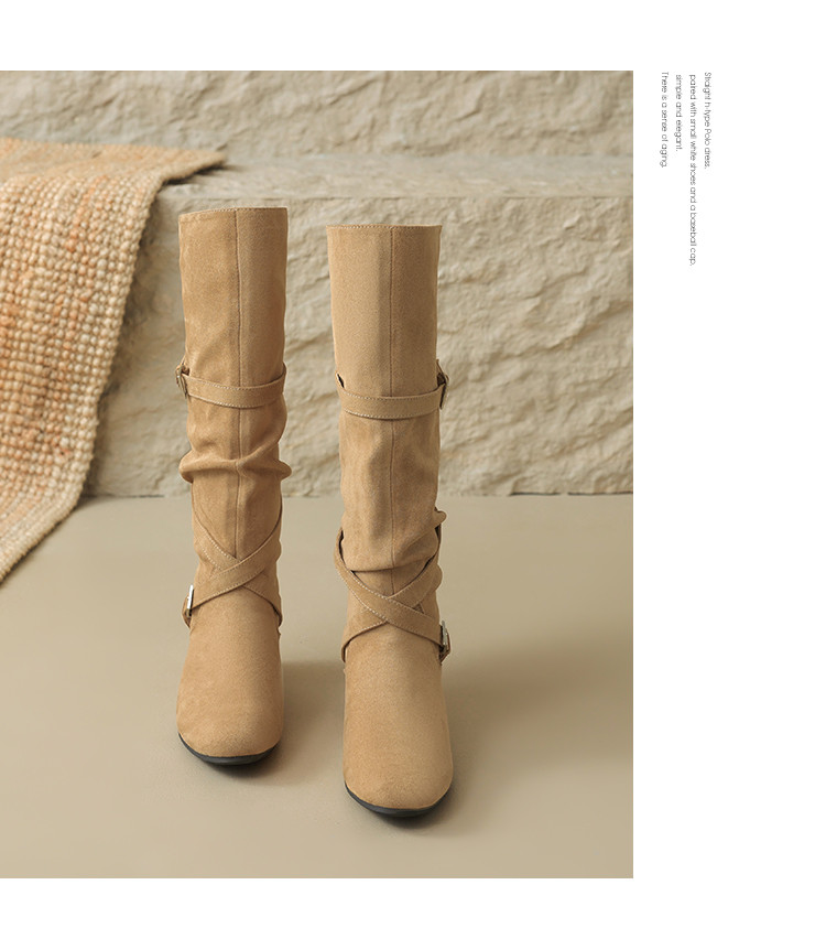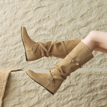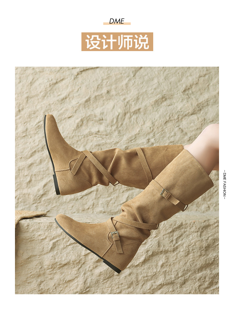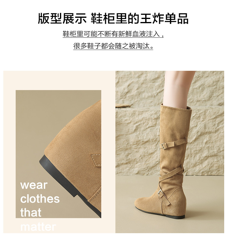 【冬日氛围感】25冬韩系内增高百搭尖头褶皱堆堆靴女靴