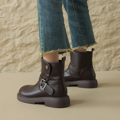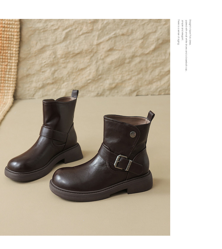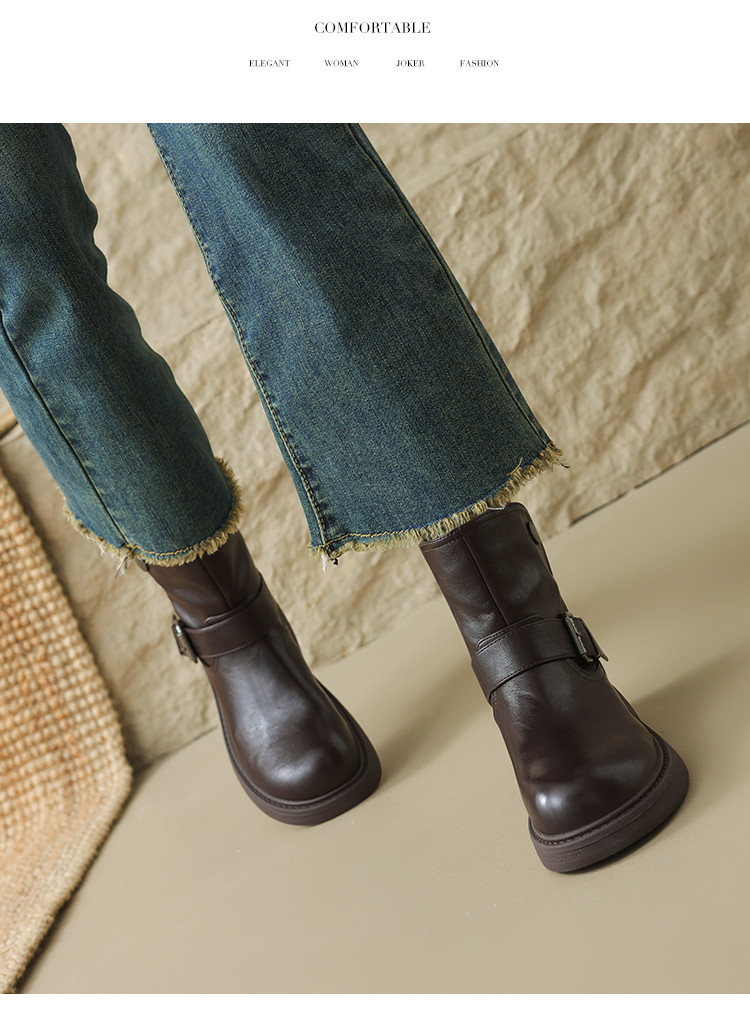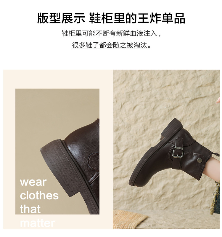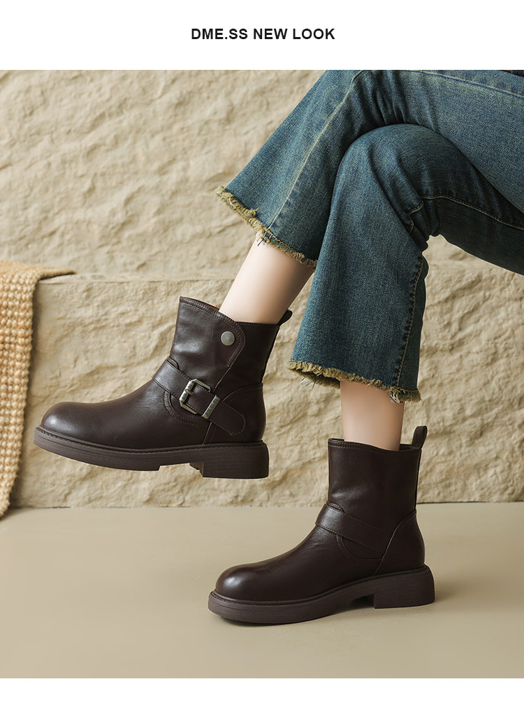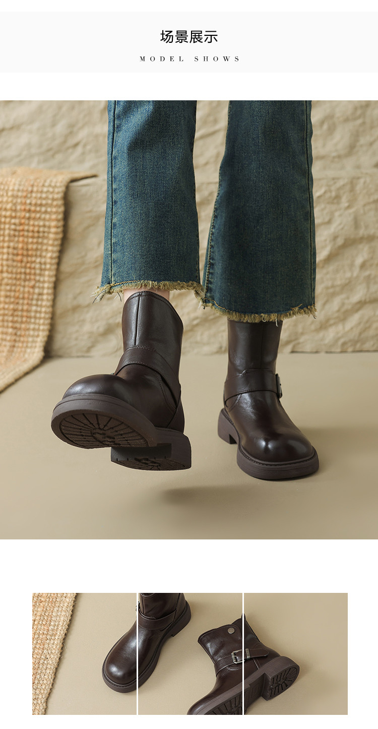 【休闲通勤】25冬简约百搭系带圆头皮带扣软垫舒适工装靴