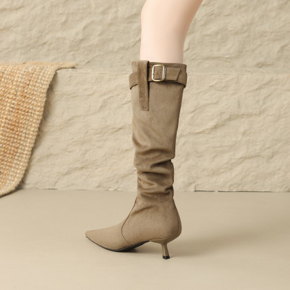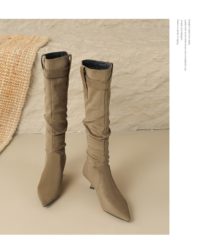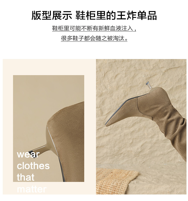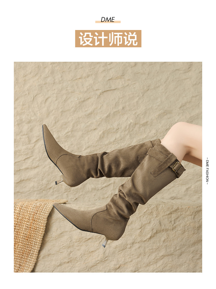 【通勤百搭战靴】25年冬季细跟绒面高筒靴弹性靴筒适配各种腿型