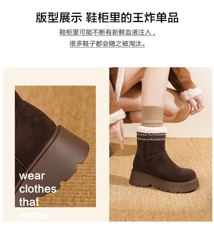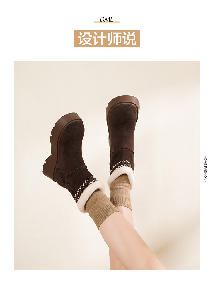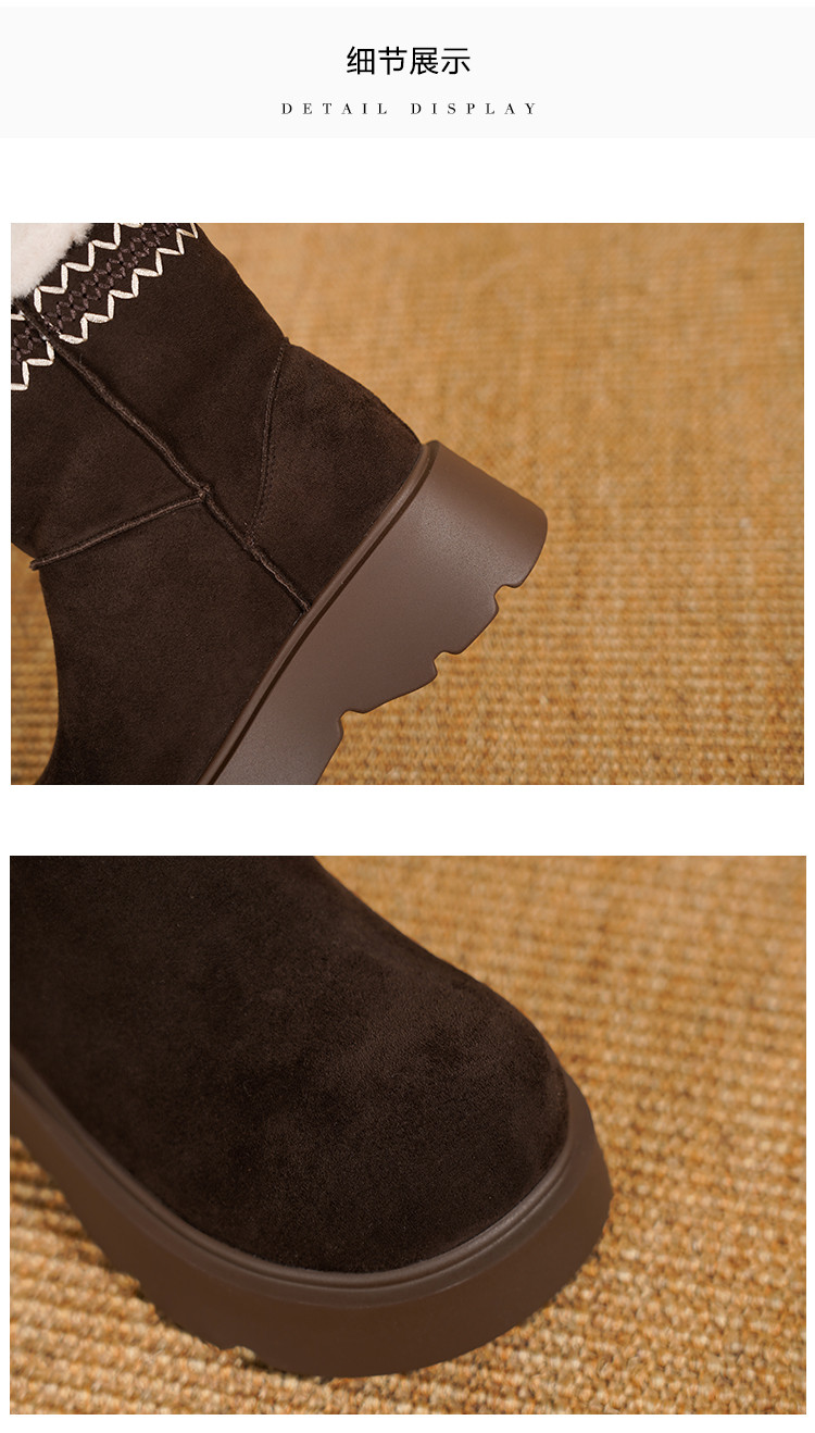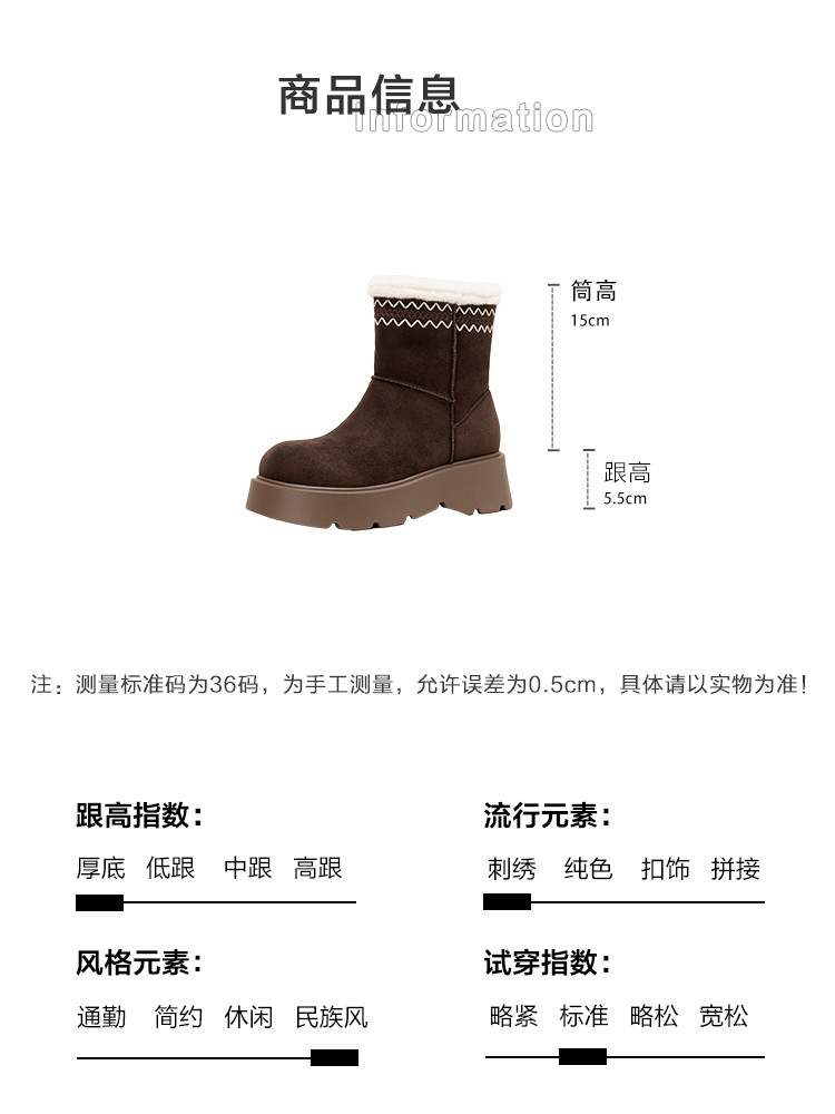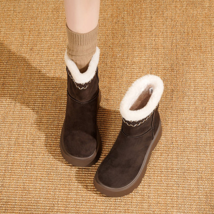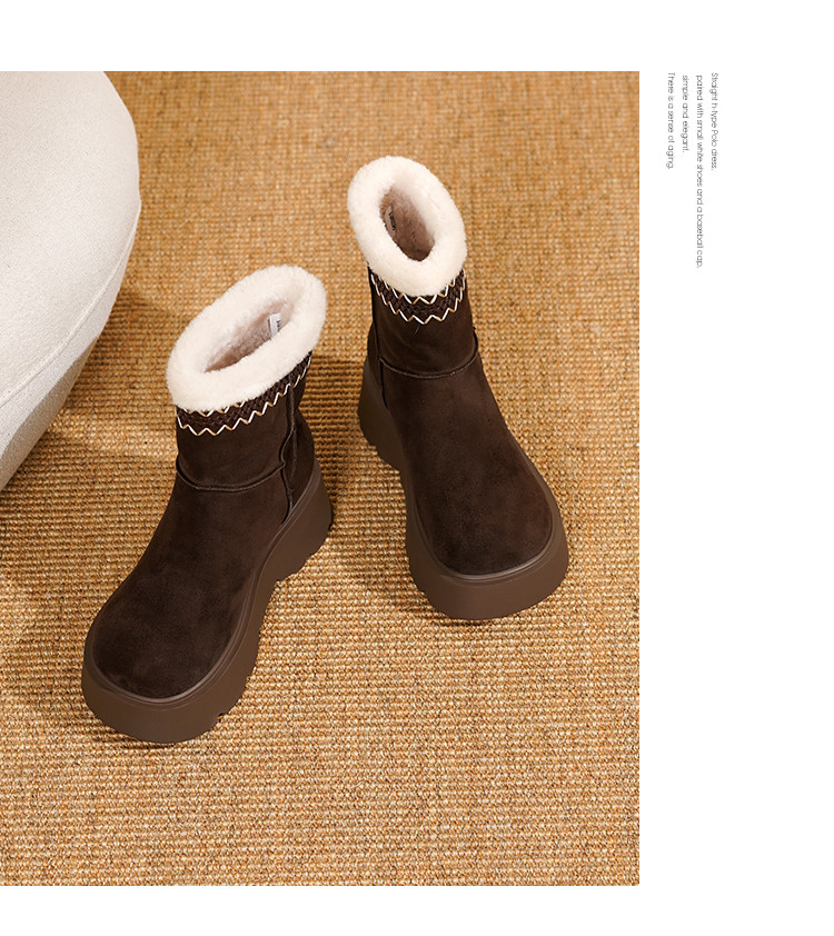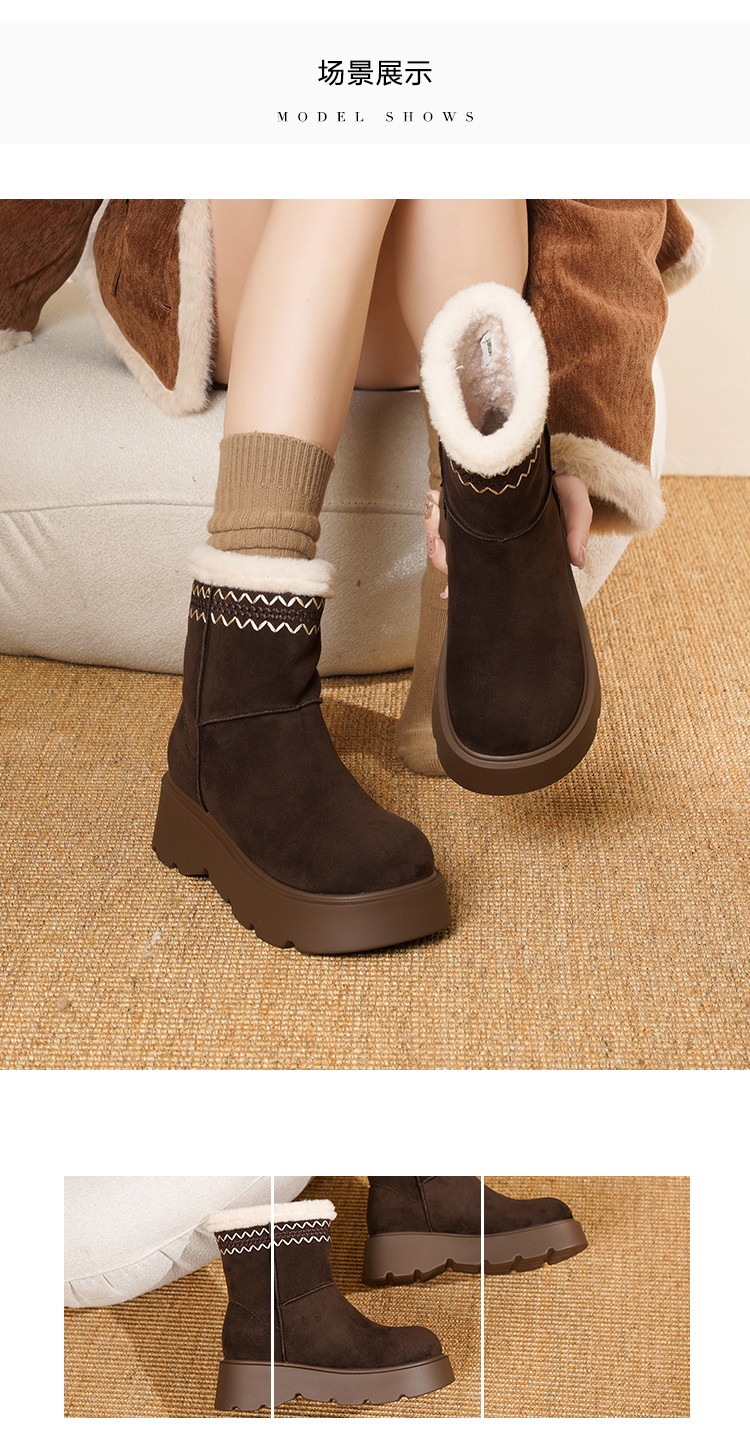 【冬日氛围感】25冬韩系刺绣厚底仿羊羔毛口加绒内里保暖雪地靴