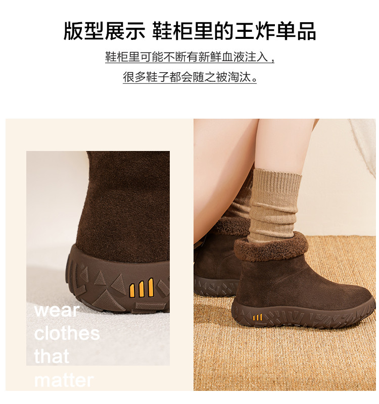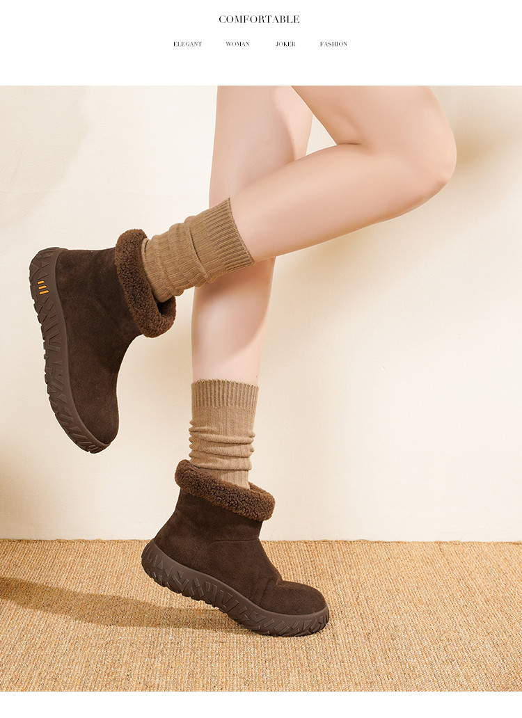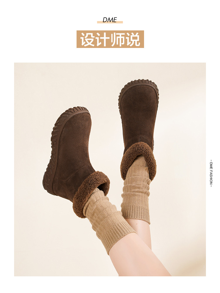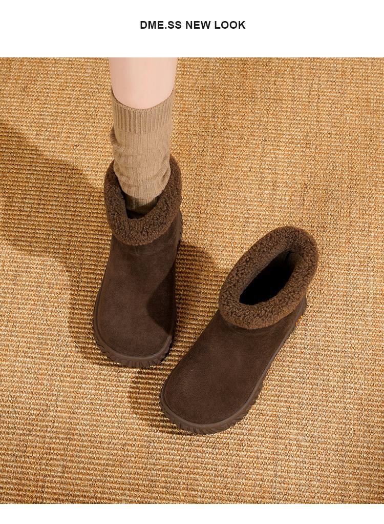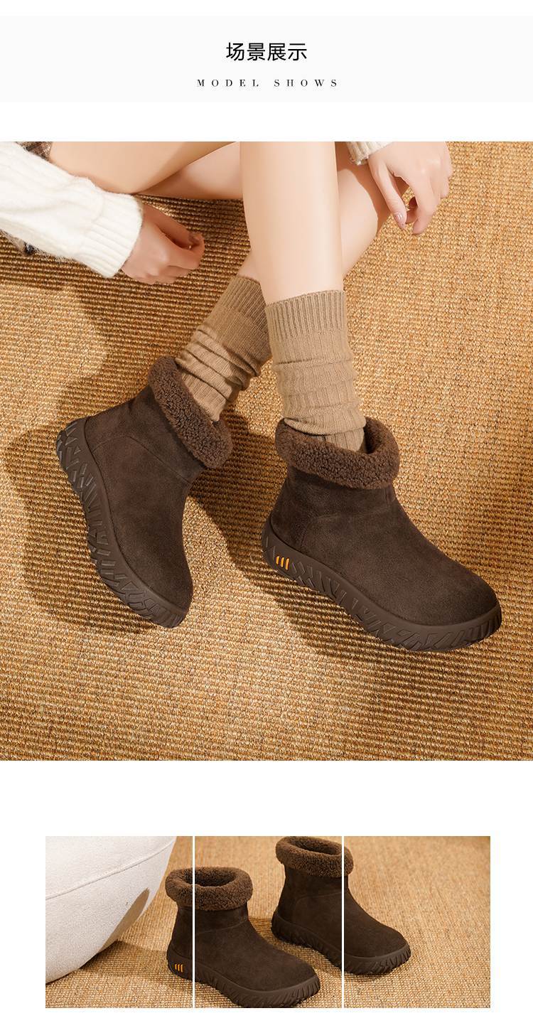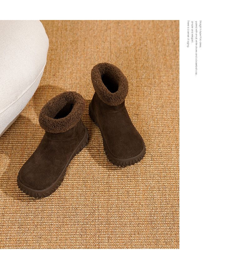【韩系慵懒】25冬毛口立体榴莲纹底加厚仿羊羔毛保暖短靴雪地靴