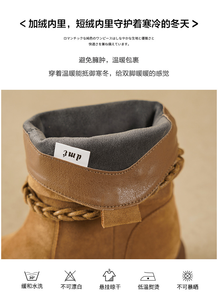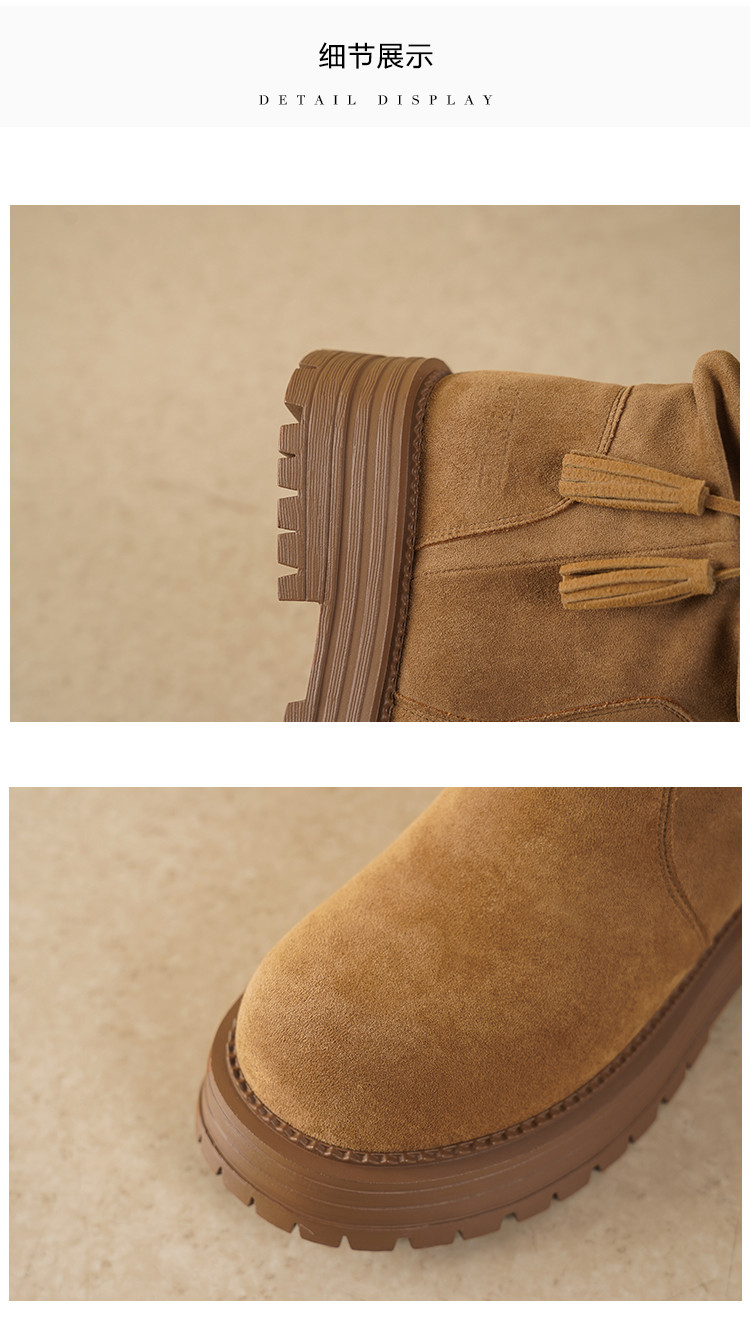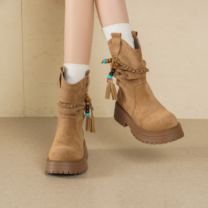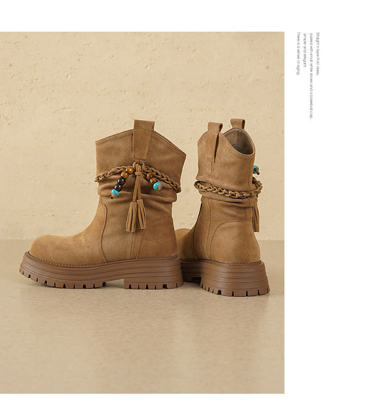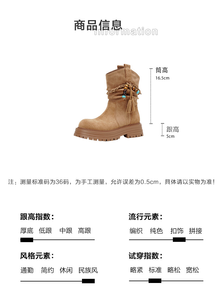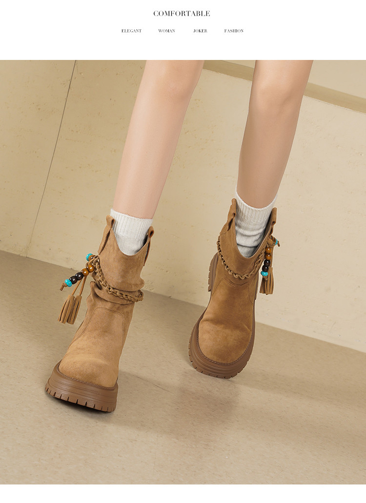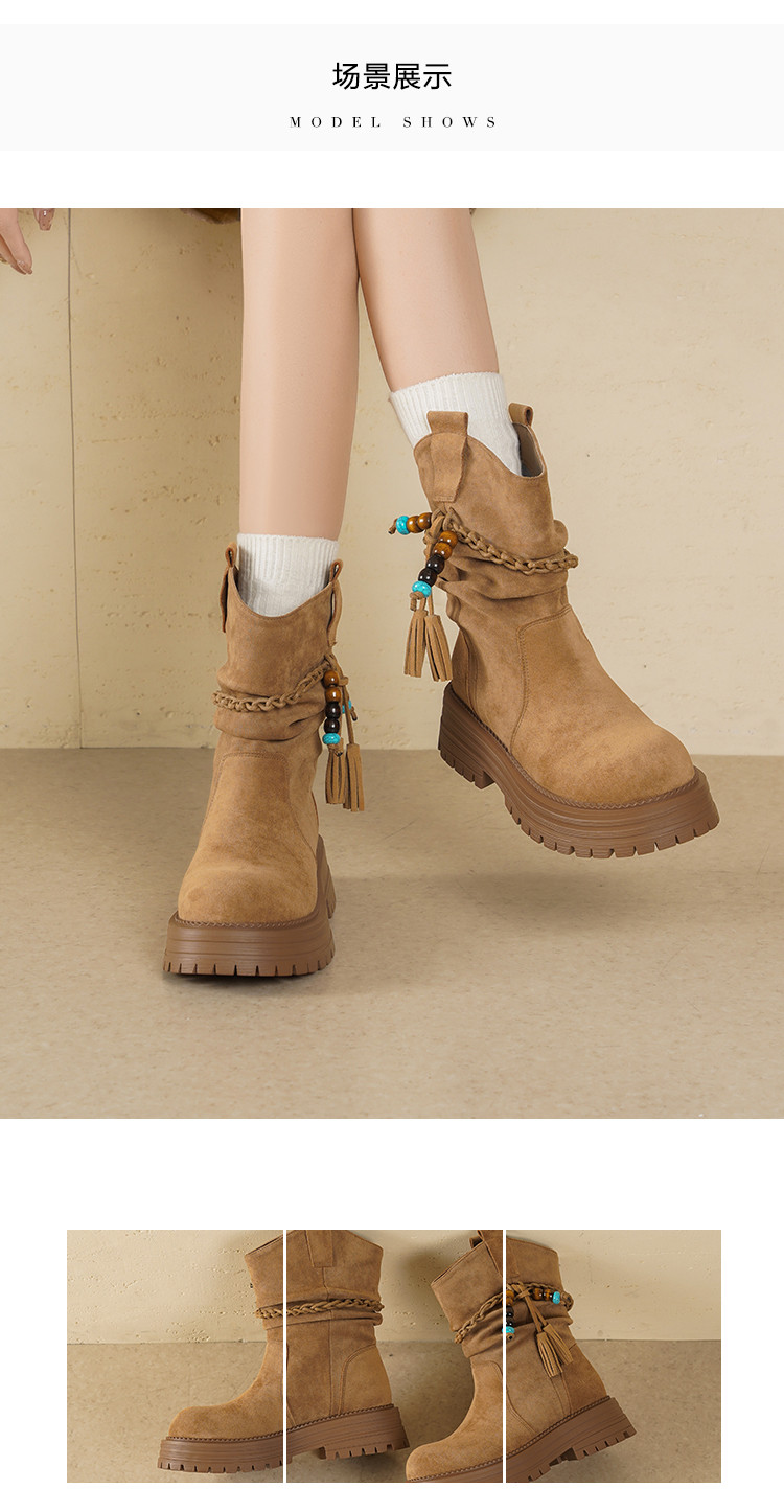 【冬日氛围感】25冬民族风厚底百搭圆头编织流苏褶皱堆堆靴女靴
