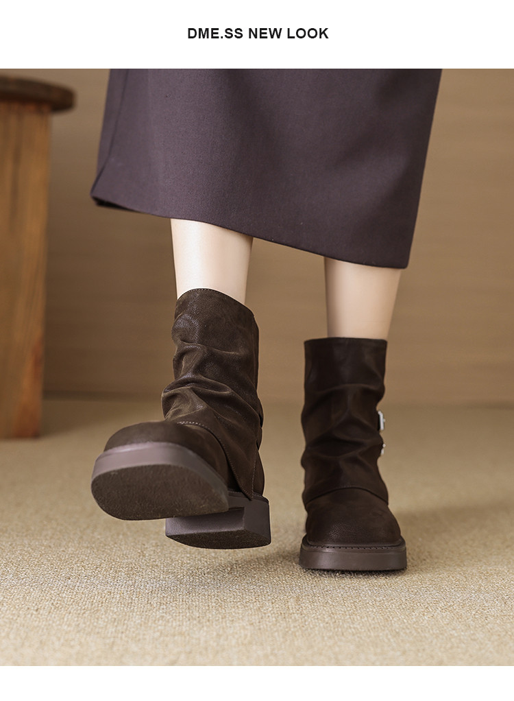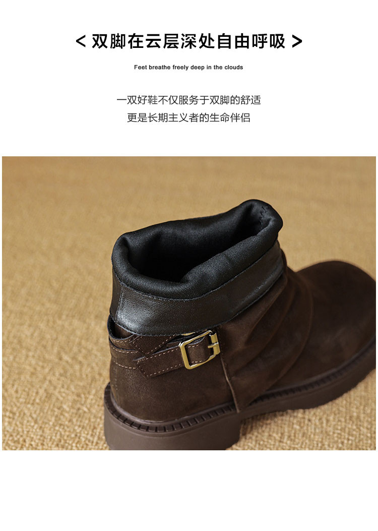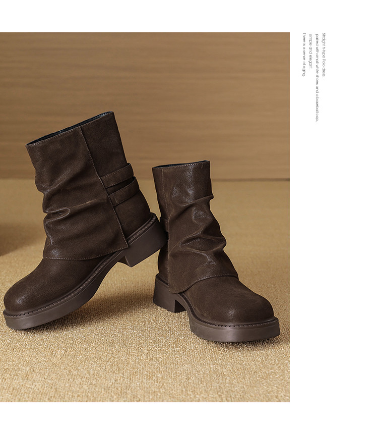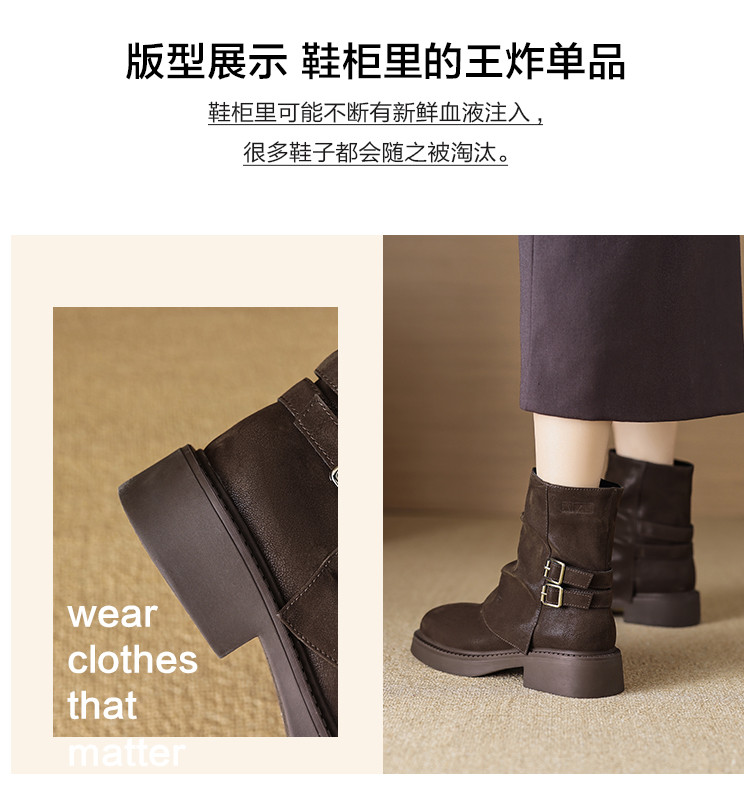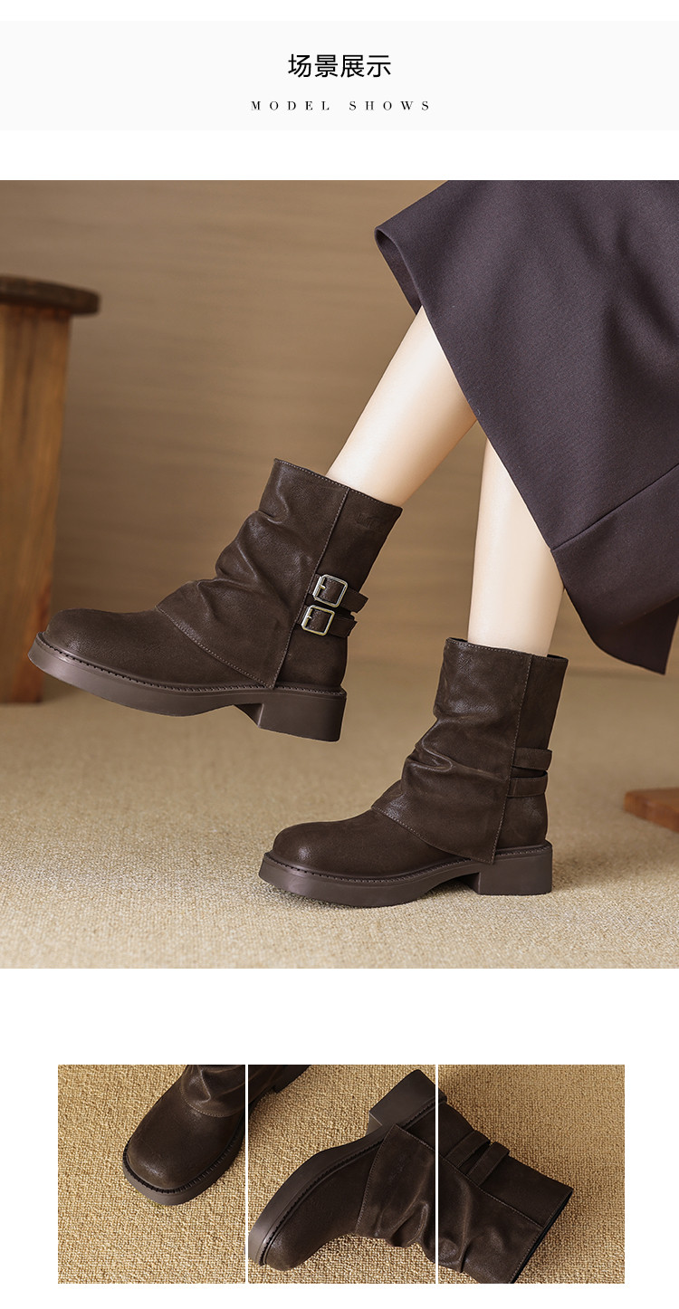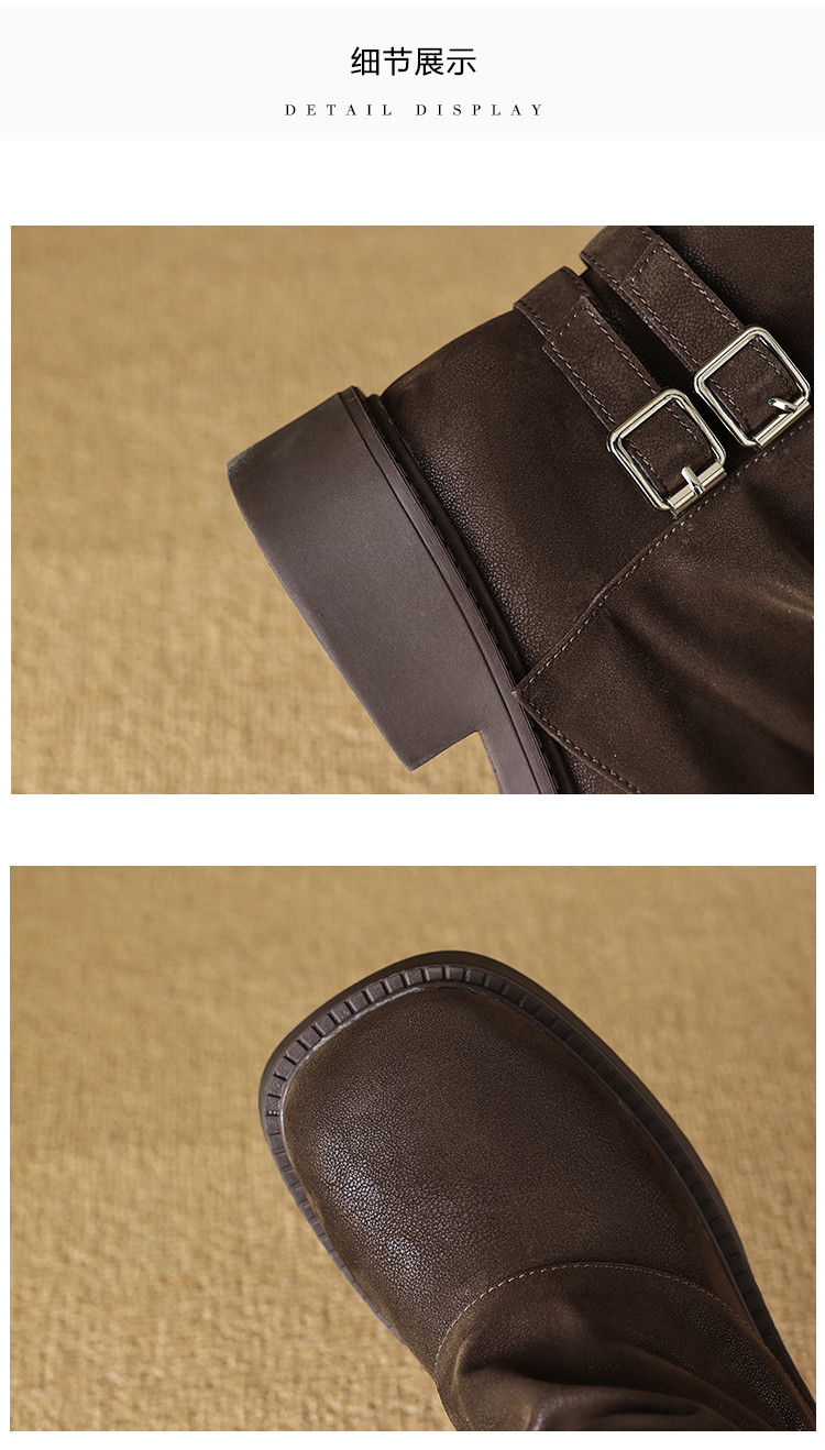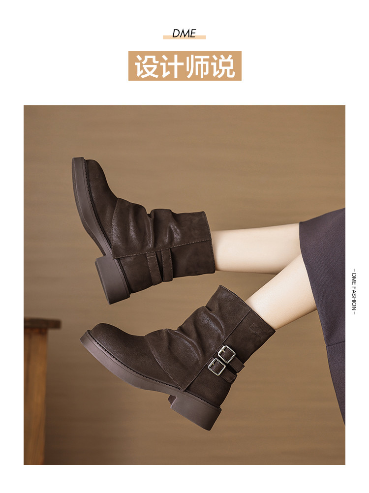 潮酷冬季时尚复古百搭双扣方圆头裤靴堆堆靴西部靴