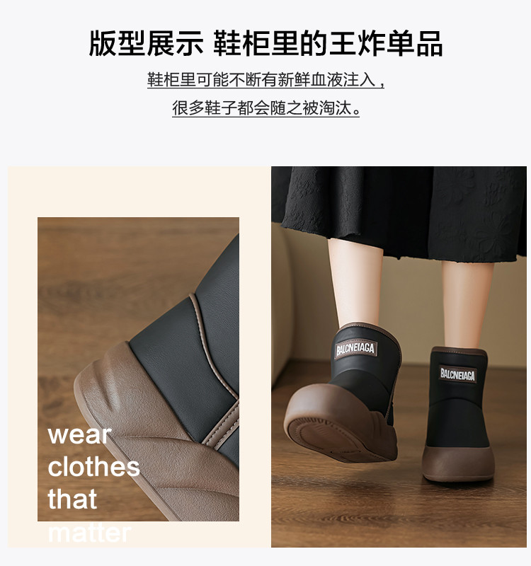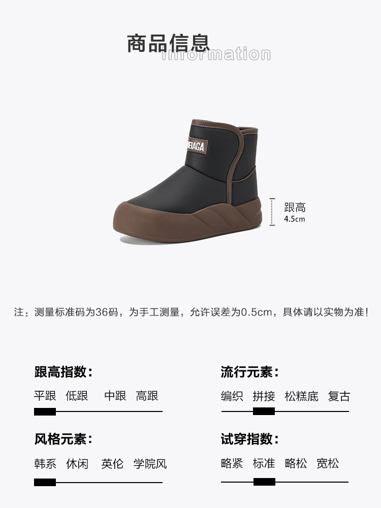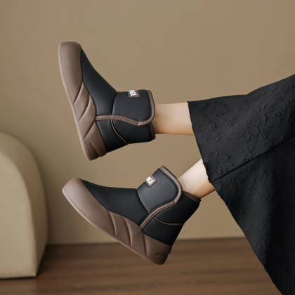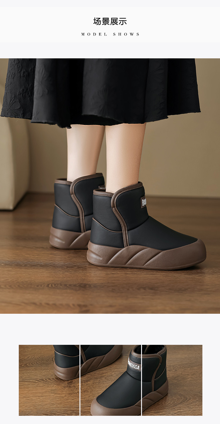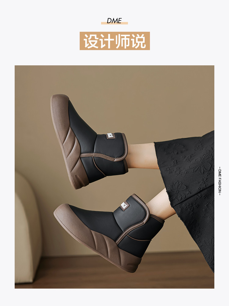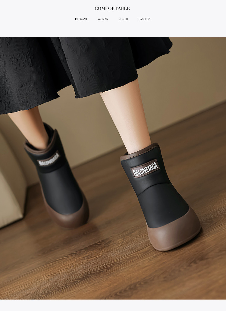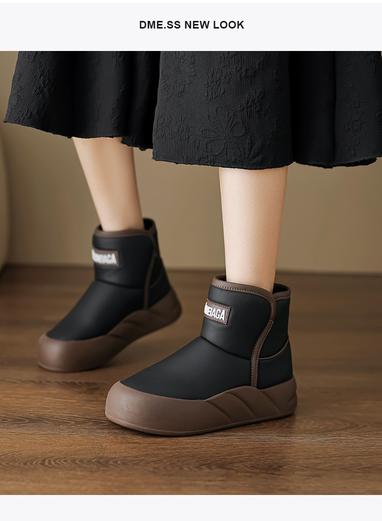 冬季潮流百搭韩系字母标撞色包边美拉德色系厚底女靴