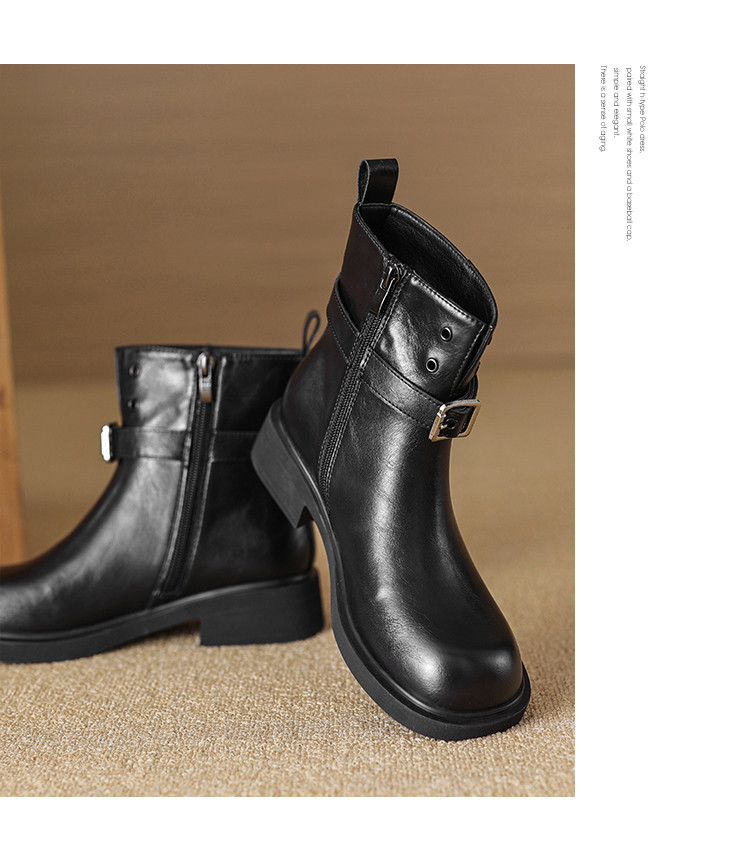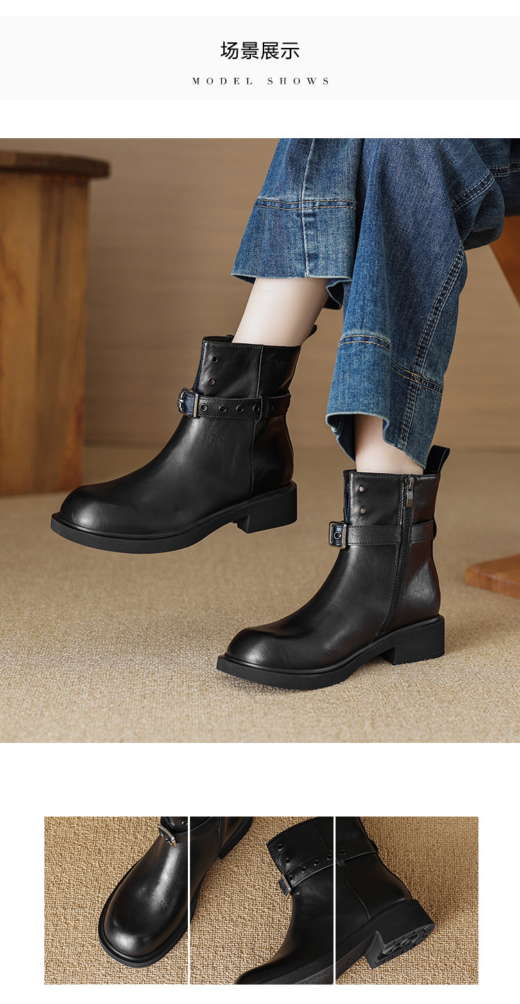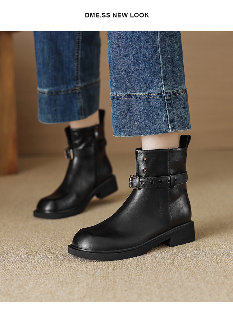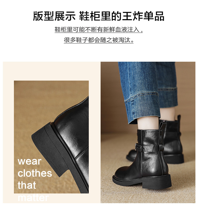 潮酷冬季时尚复古百搭双扣裤靴堆堆靴西部靴