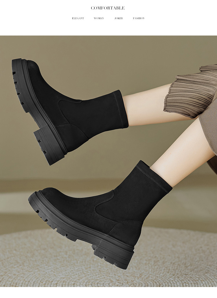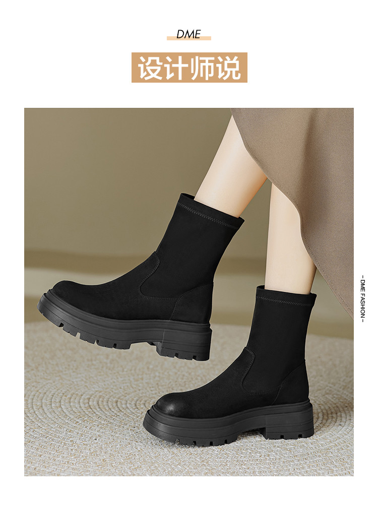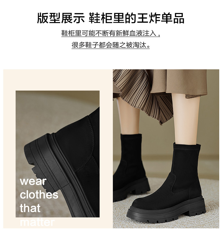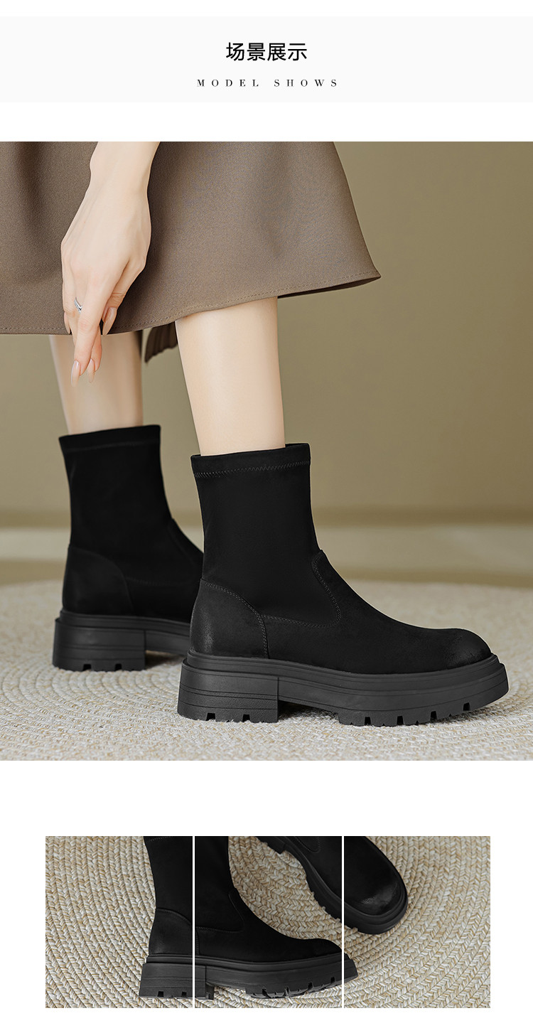 2023秋冬新款时尚简约通勤日常百搭纯色绒面圆头擦色瘦瘦靴