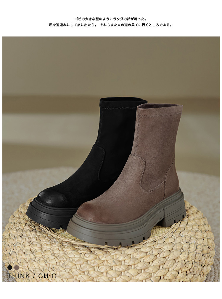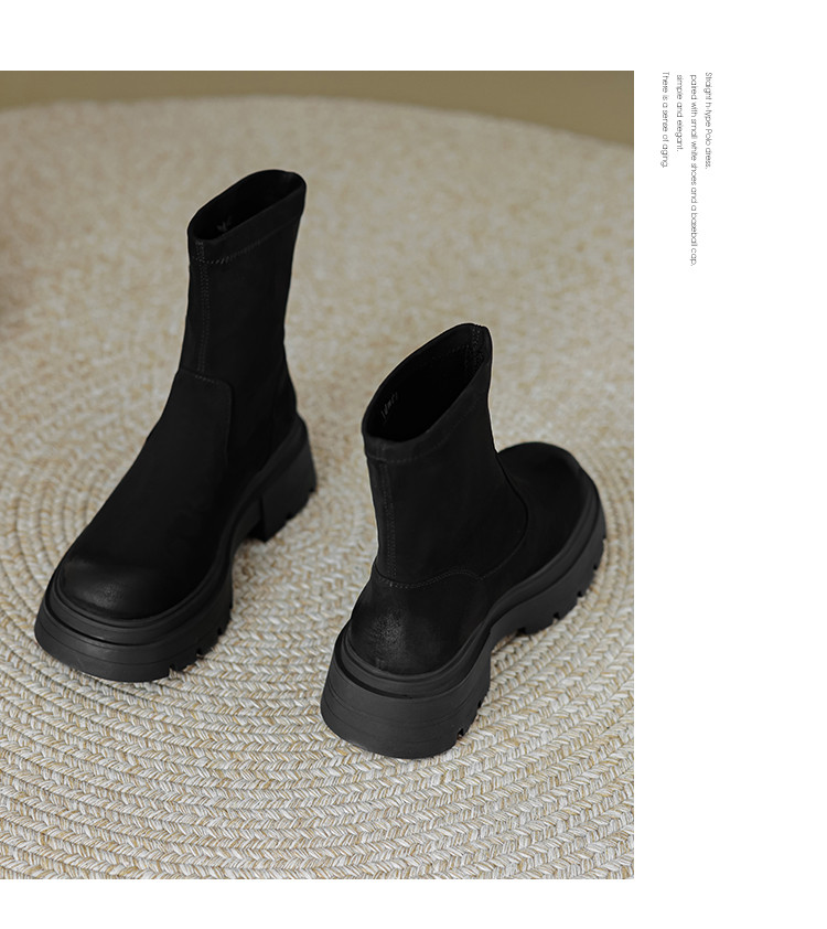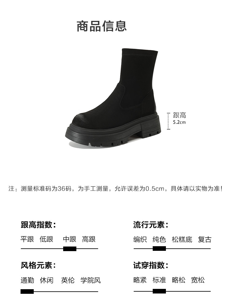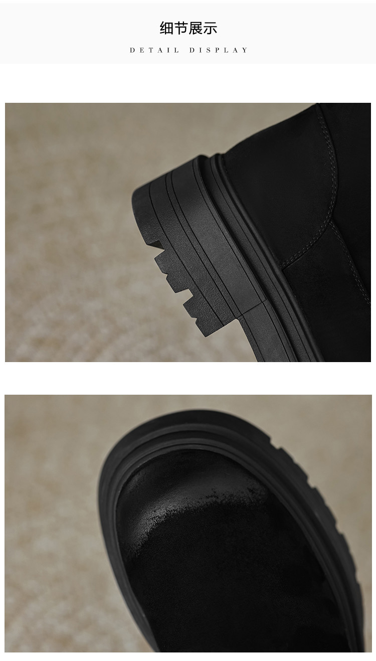 2023秋冬新款时尚简约通勤日常百搭纯色绒面圆头擦色瘦瘦靴