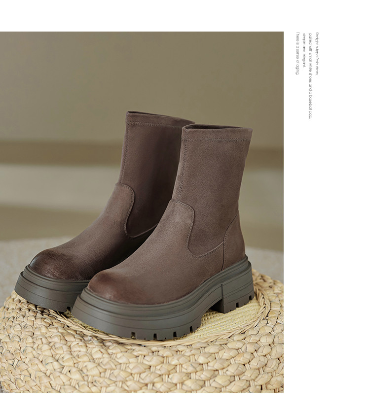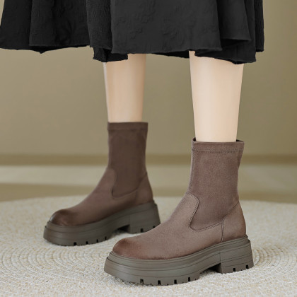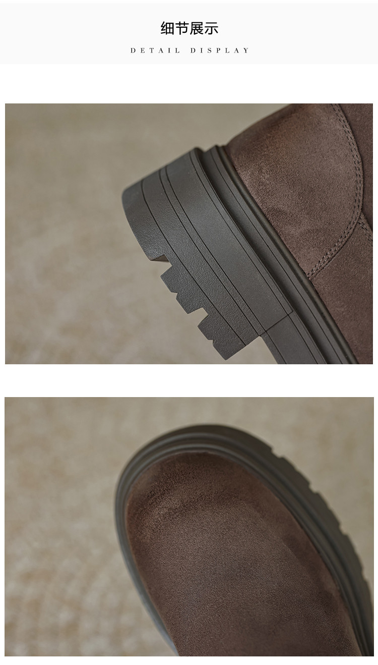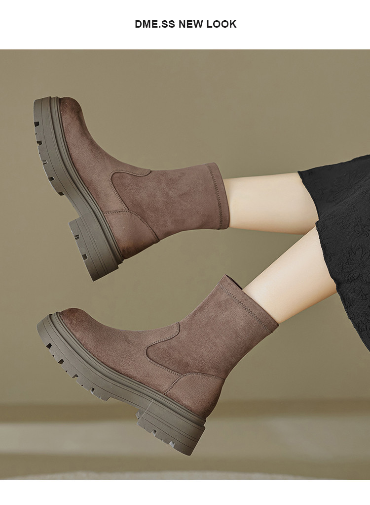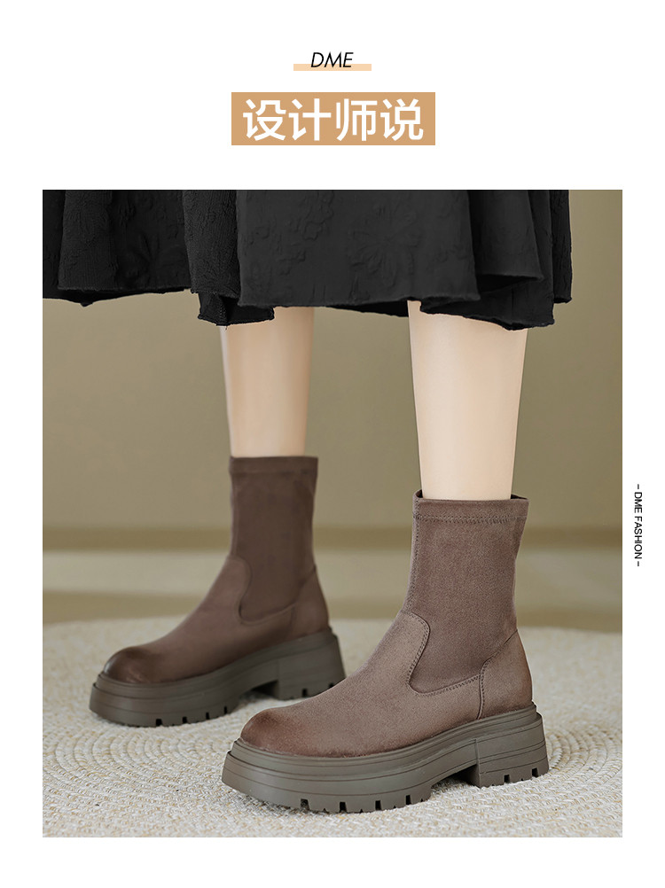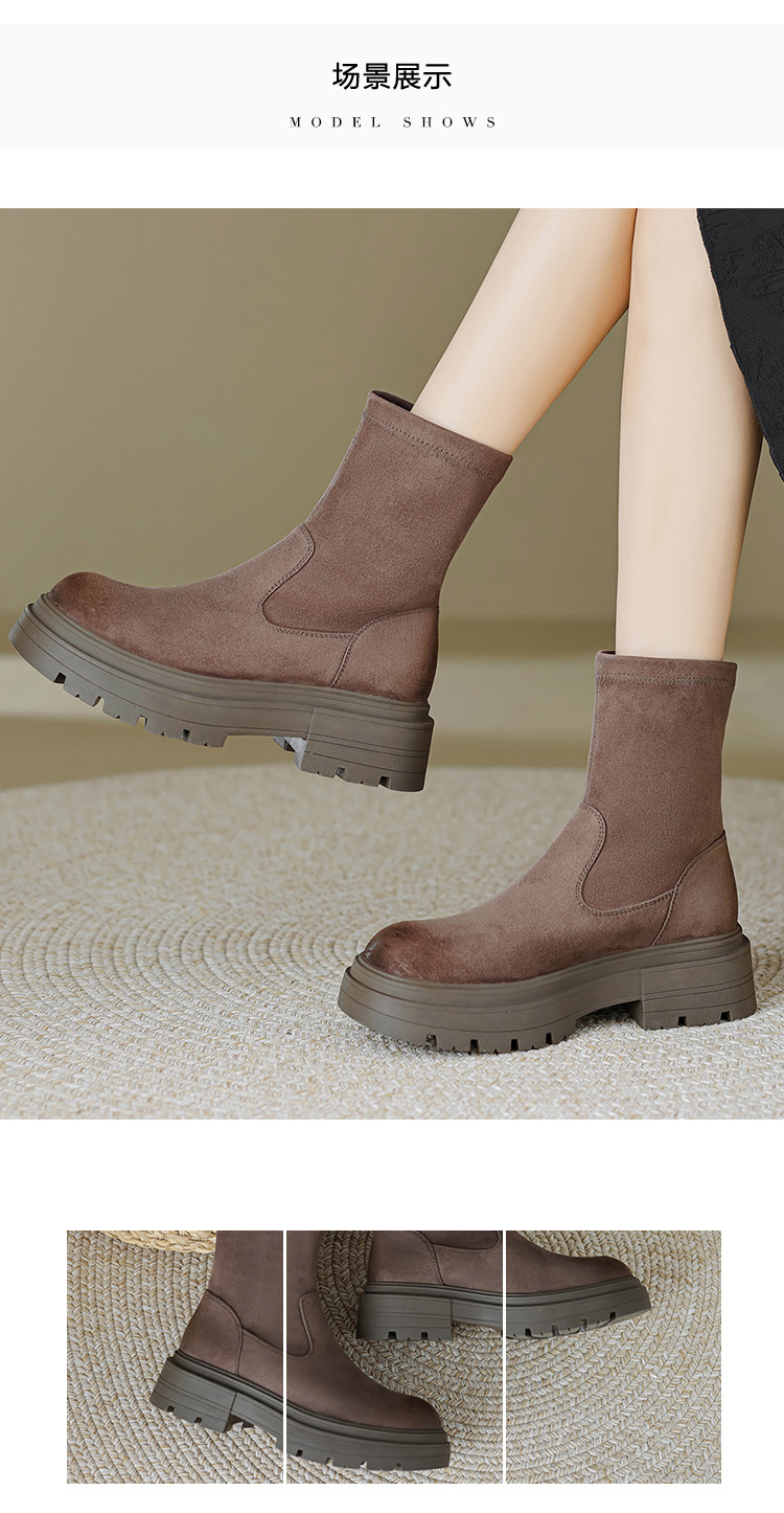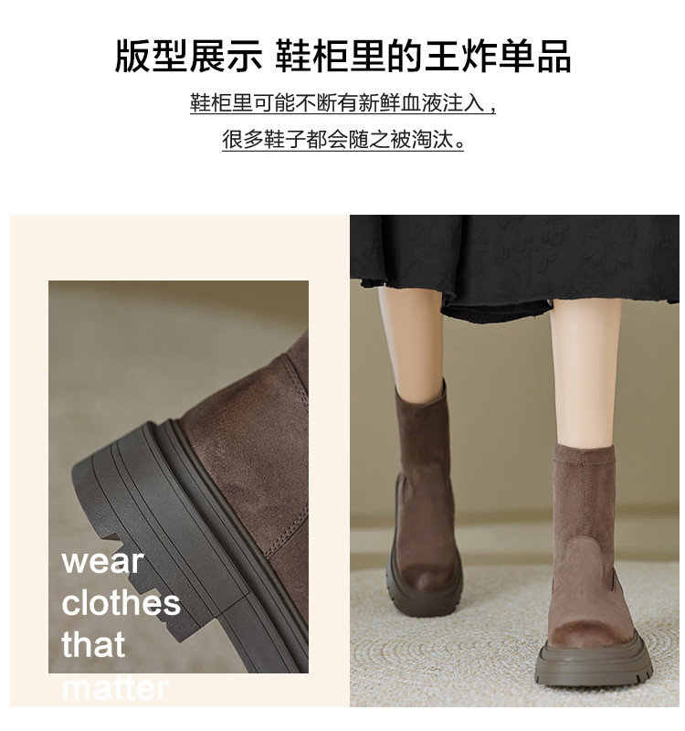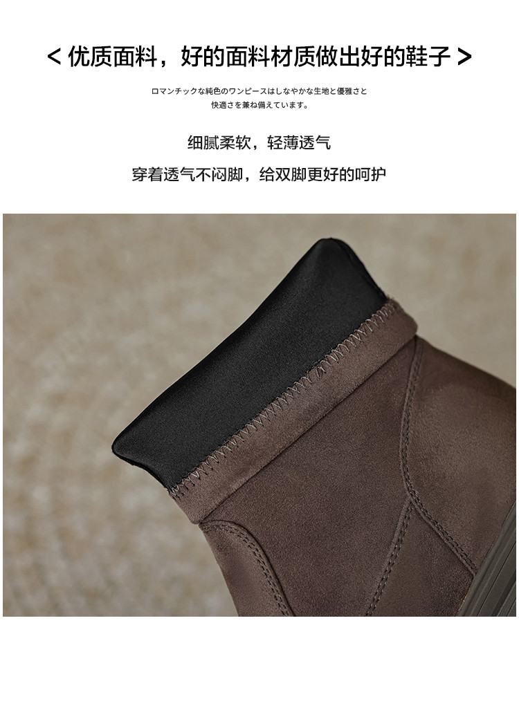 2023秋冬新款美拉德色系时尚通勤百搭纯色绒面圆头擦色瘦瘦靴