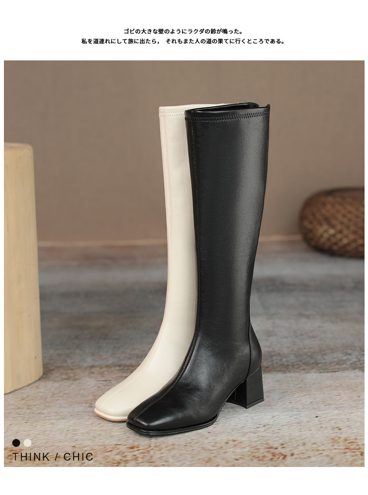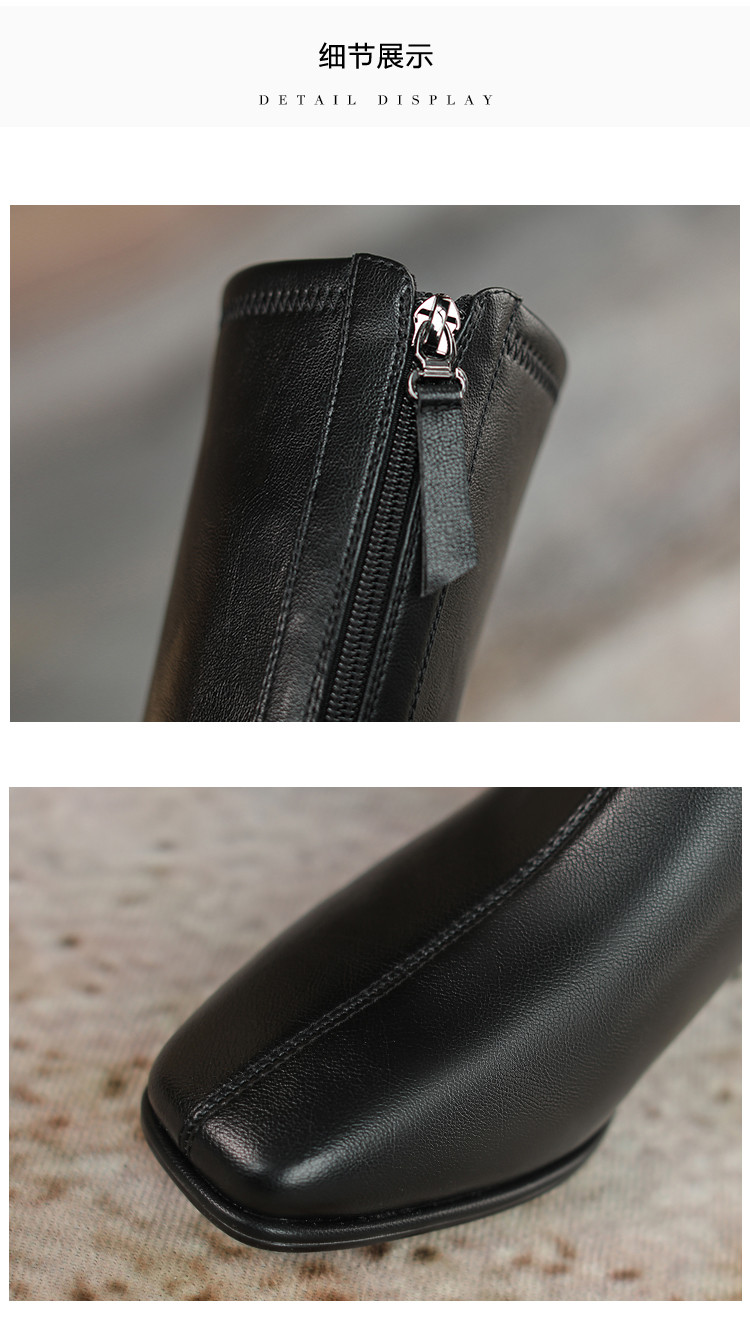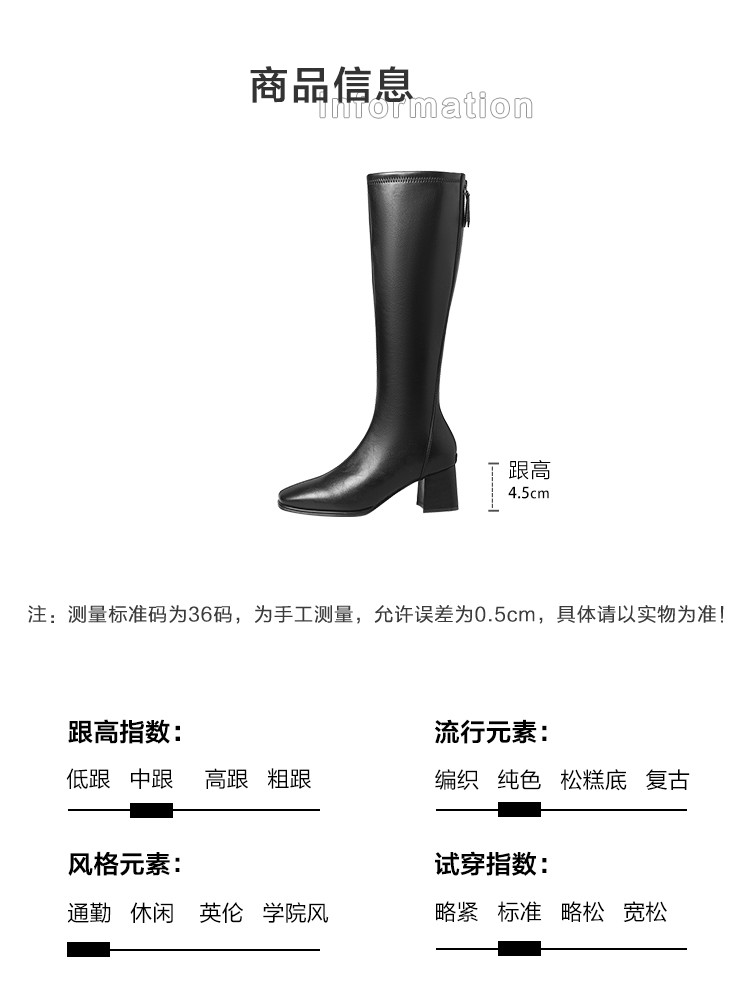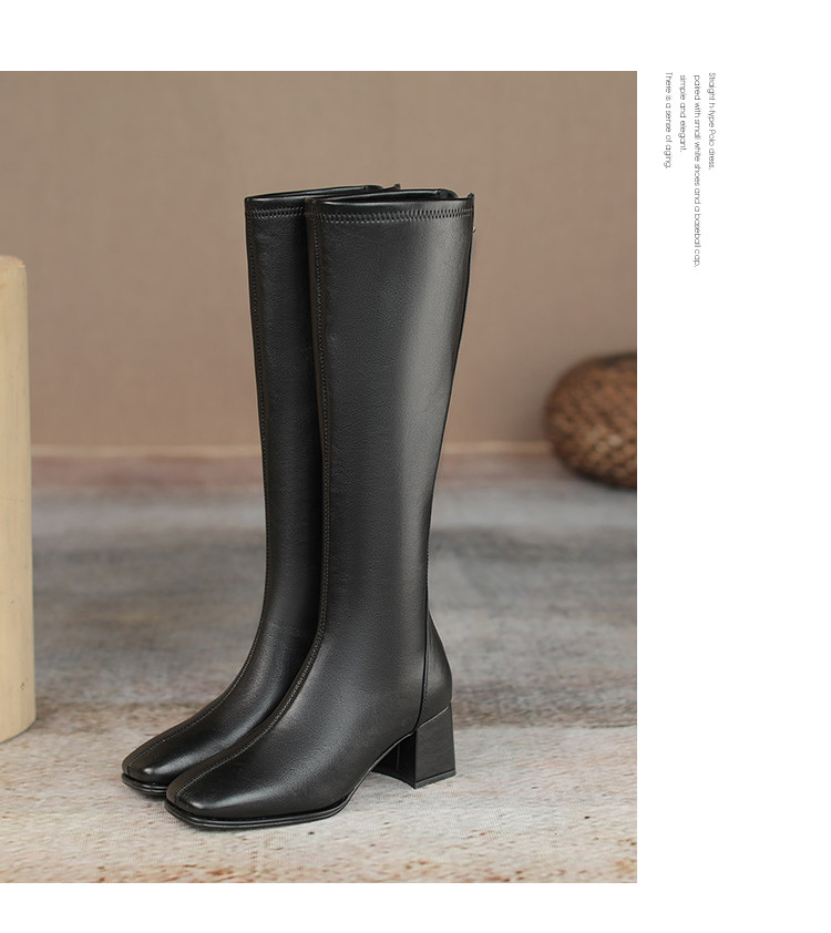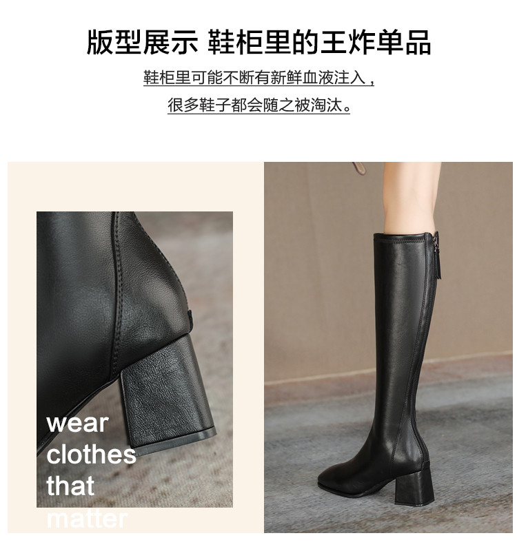 冬季新款高跟方头气质高筒瘦瘦靴加绒女靴