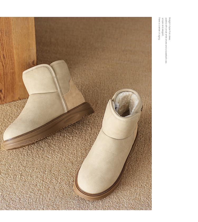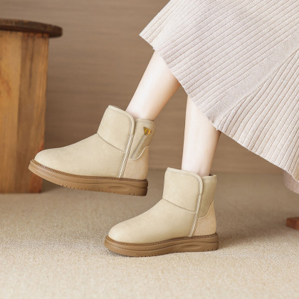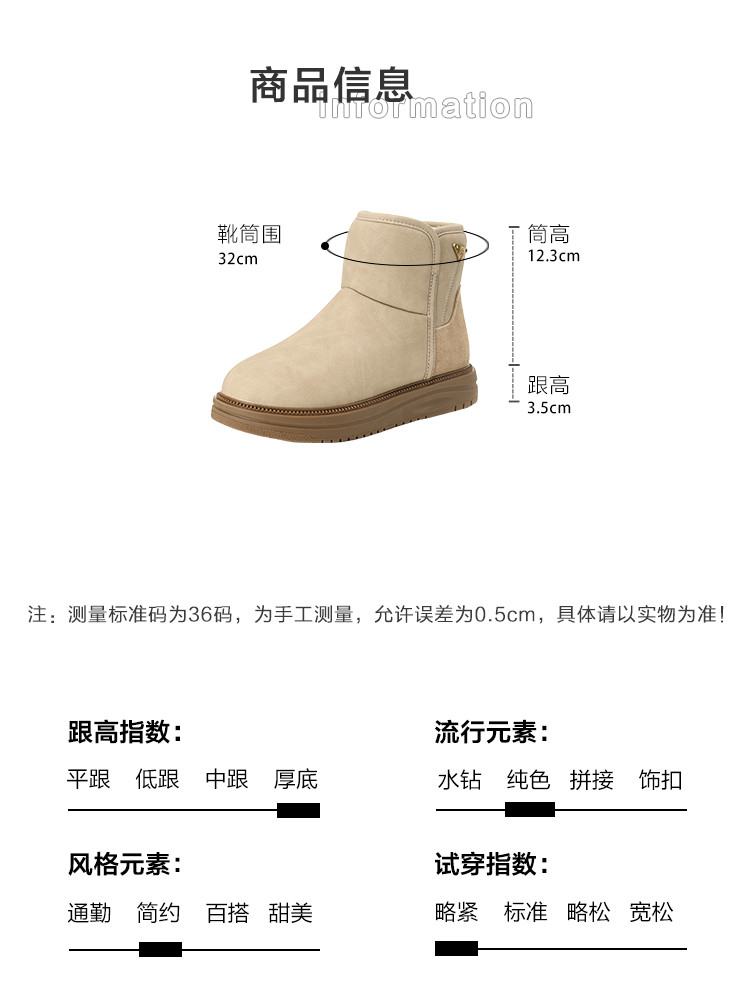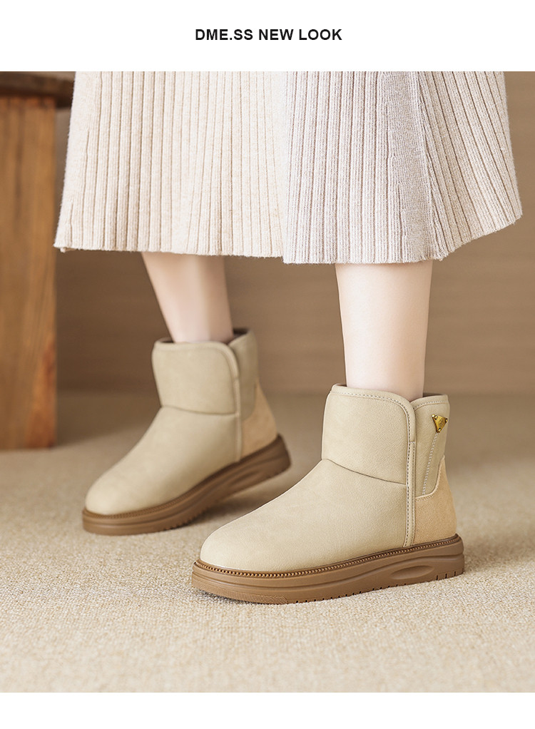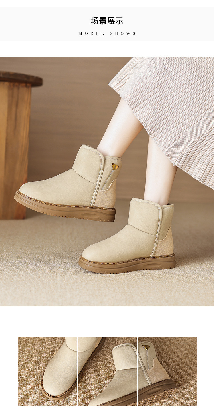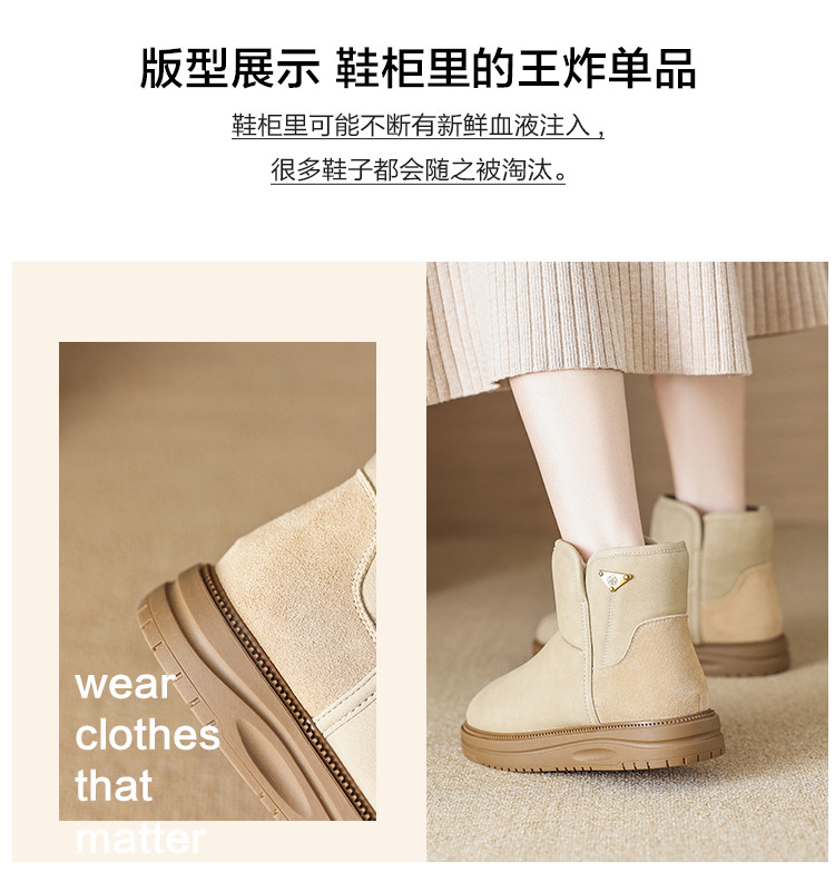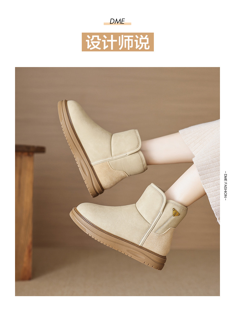 潮流简约日常通勤纯色百搭三角玫瑰雪地靴女靴