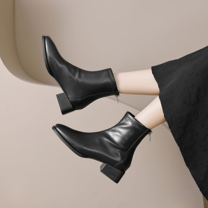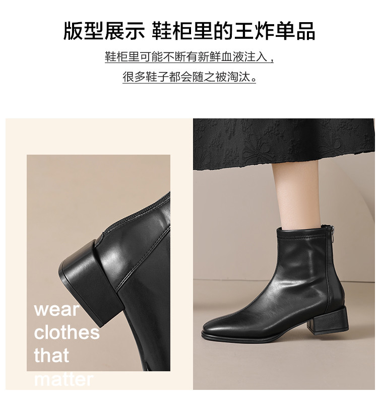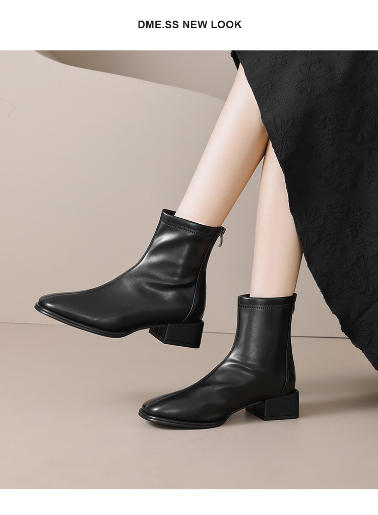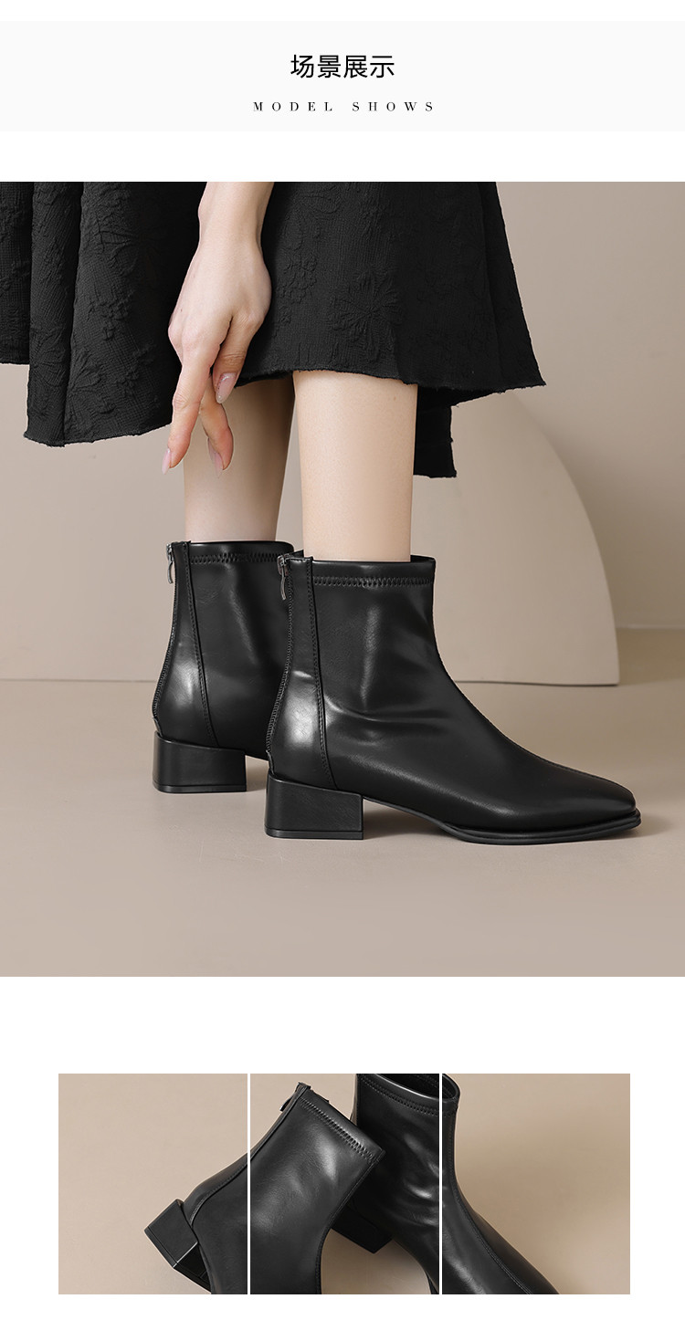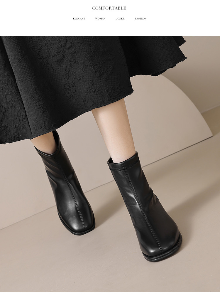 优雅简约奶油高级感气质方头通勤百搭瘦瘦靴女靴