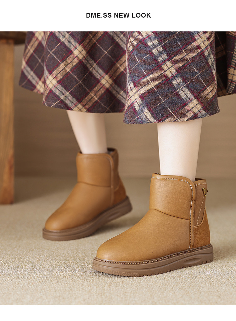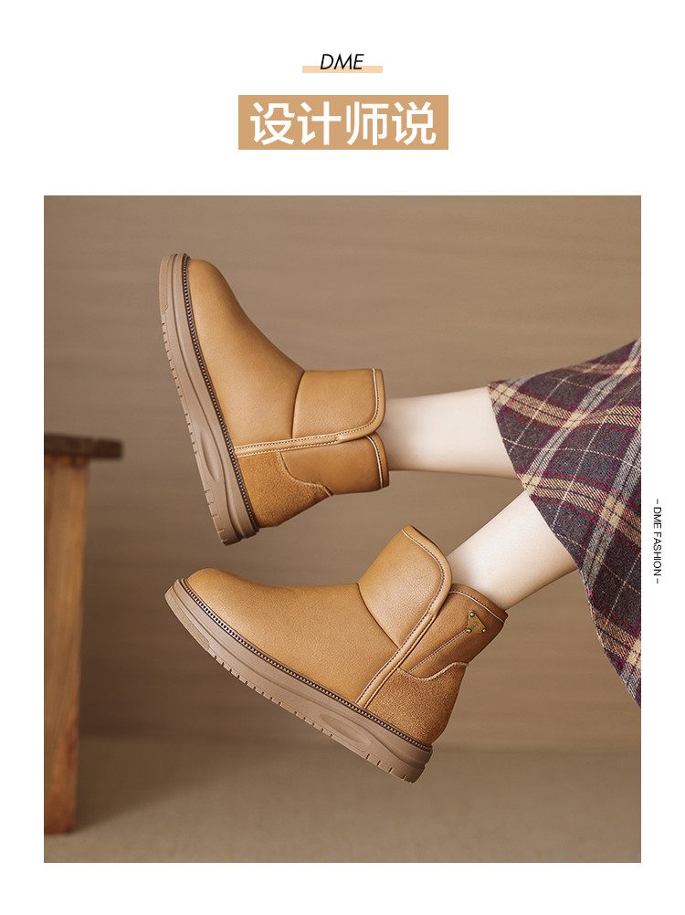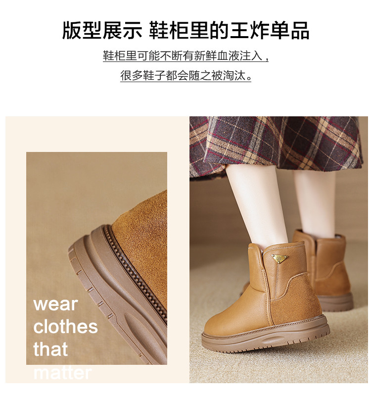 潮流简约日常通勤纯色百搭三角玫瑰雪地靴女靴