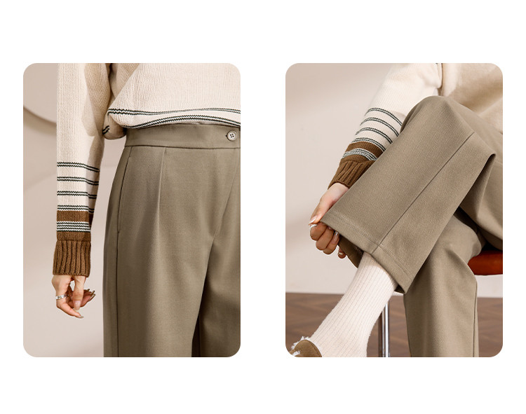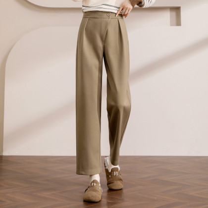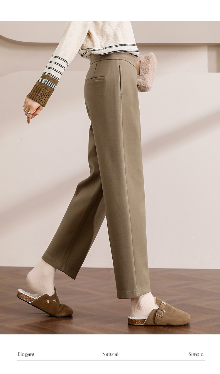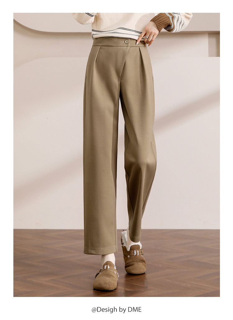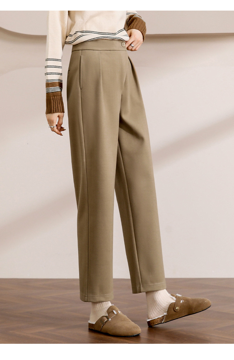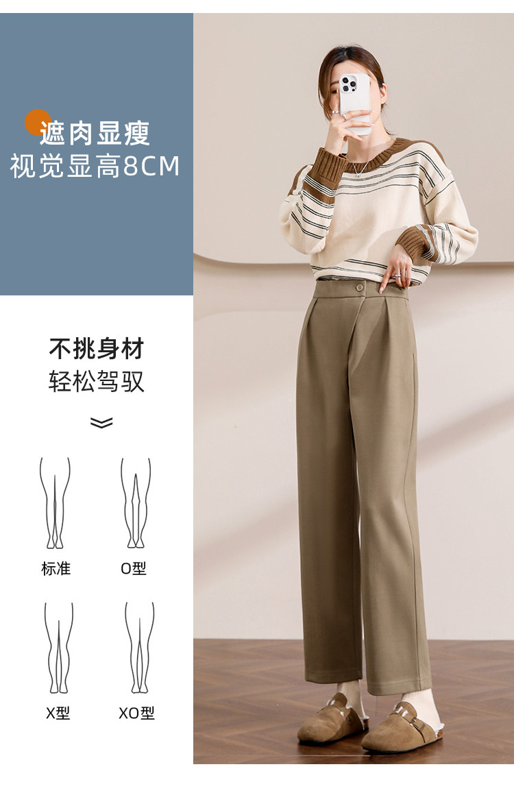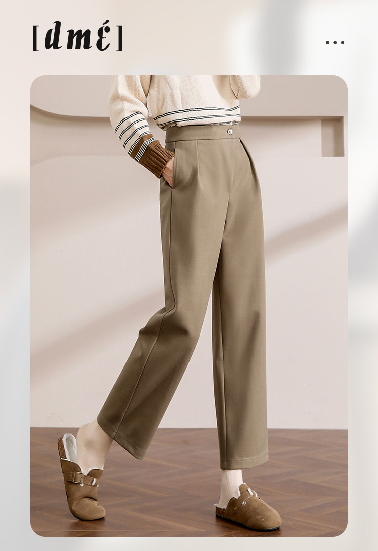 【漫步职场】春秋咖调职场宽松九分直筒裤简约舒适通勤女式休闲裤