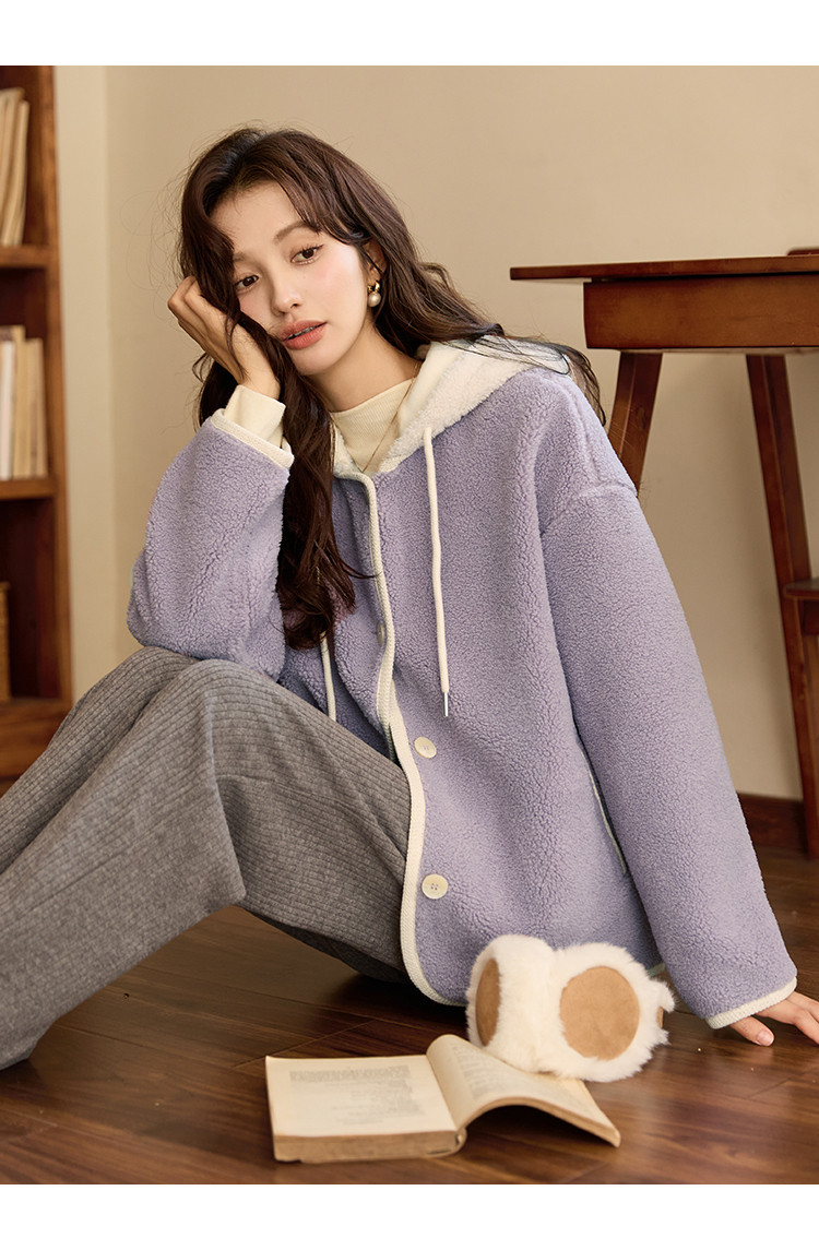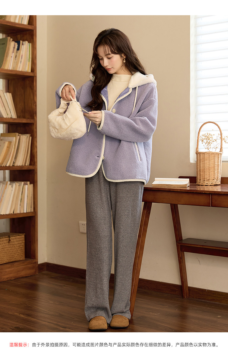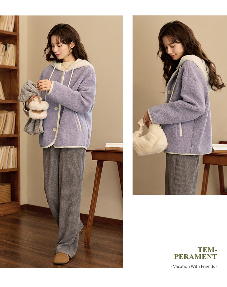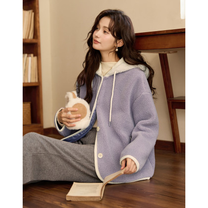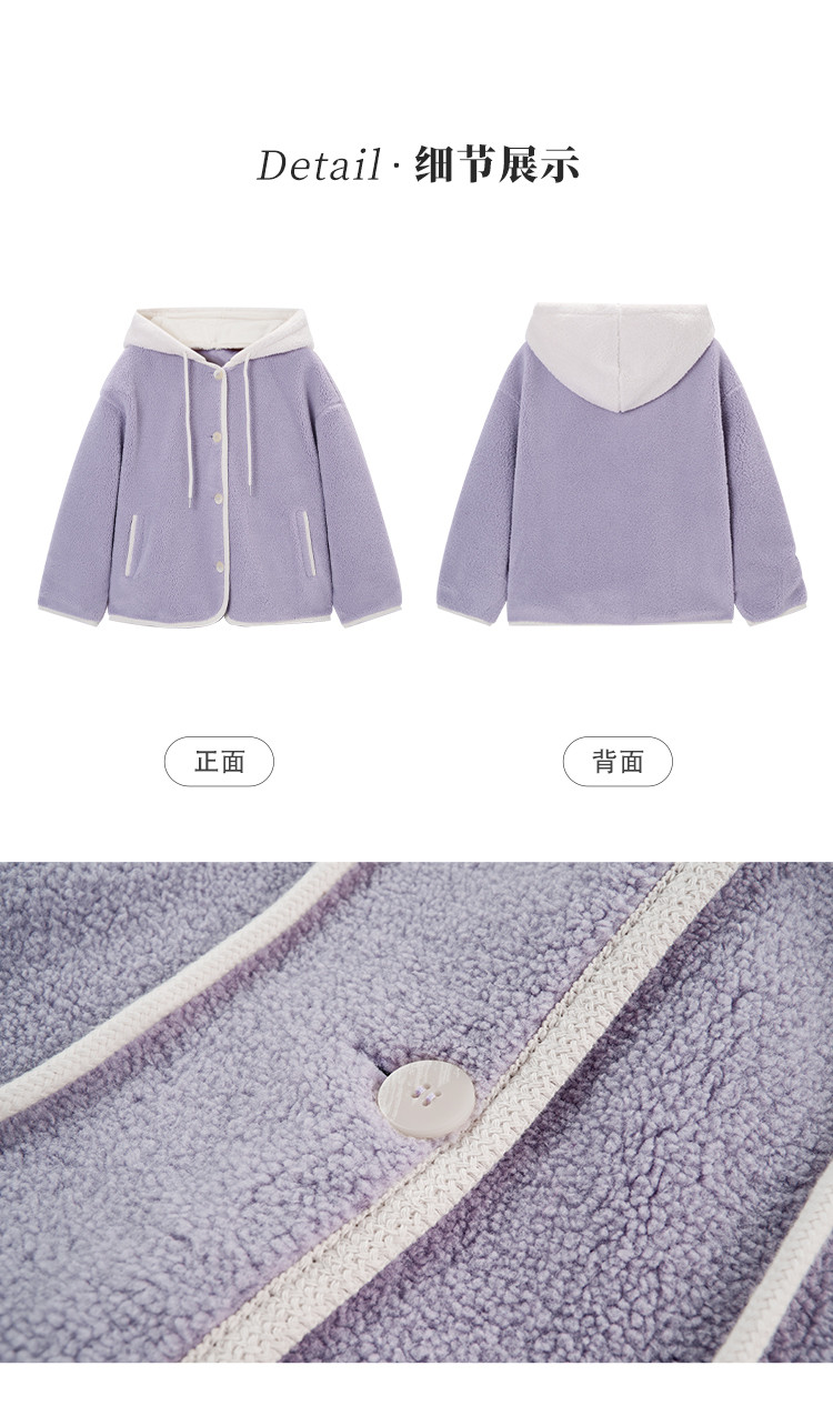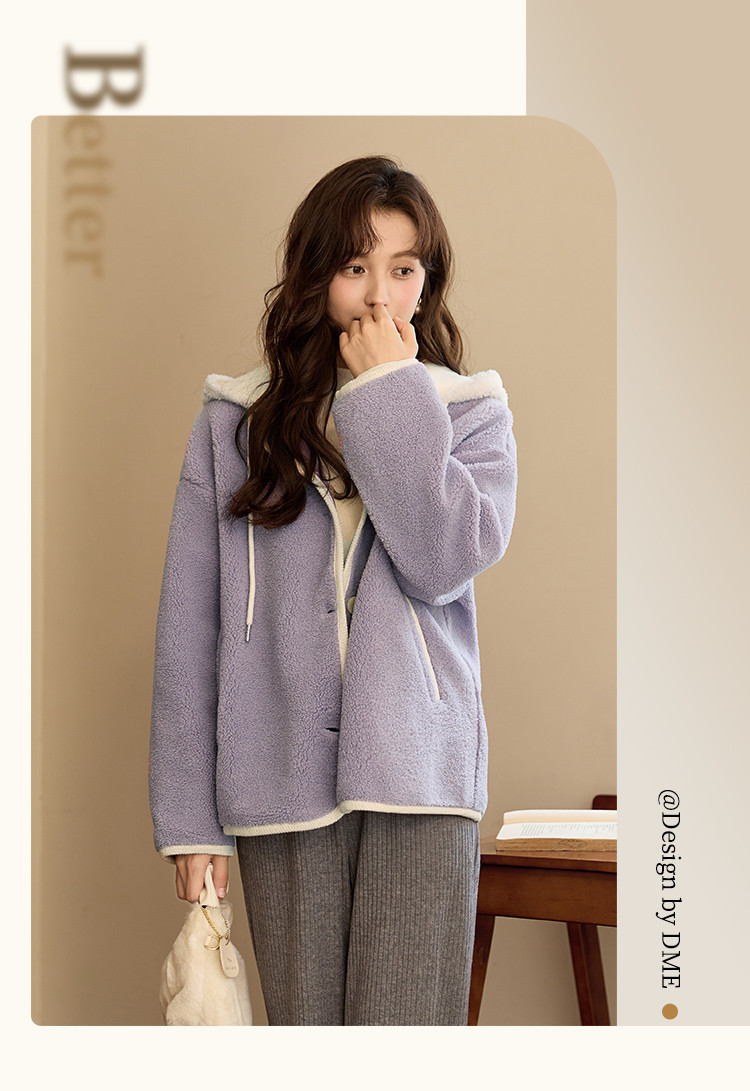 【冬日恋歌】秋冬拼接连帽短款羊羔绒外套女温柔减龄女式外套