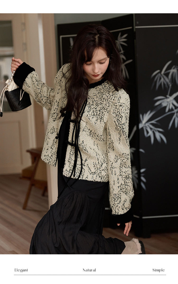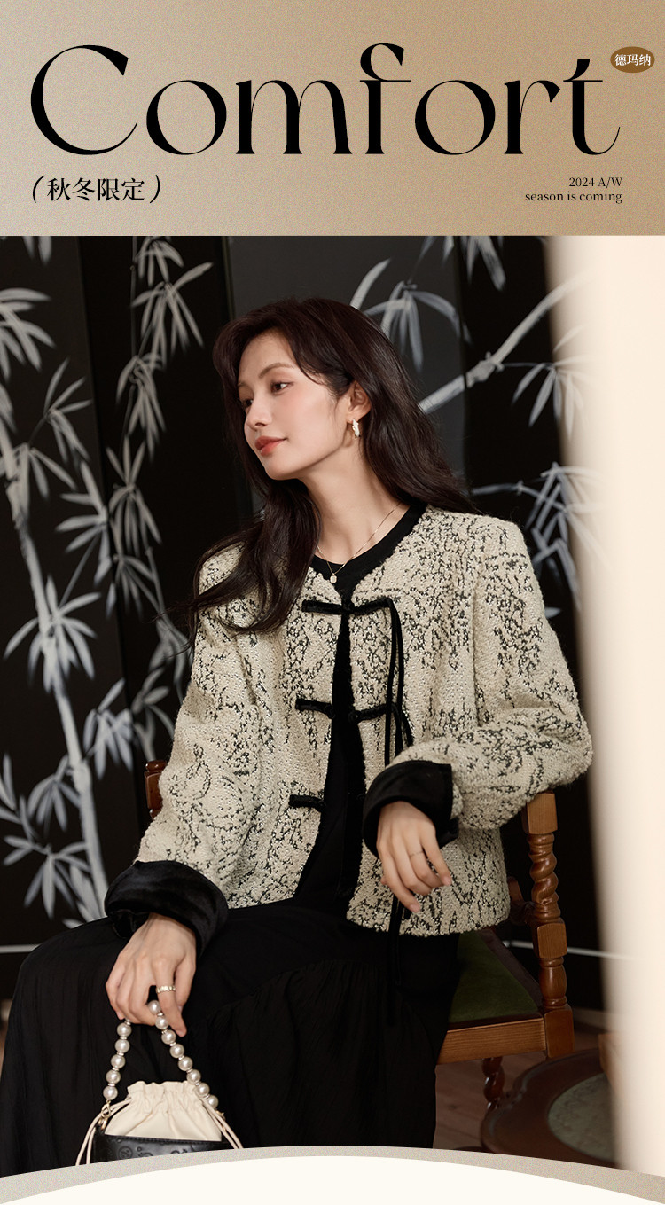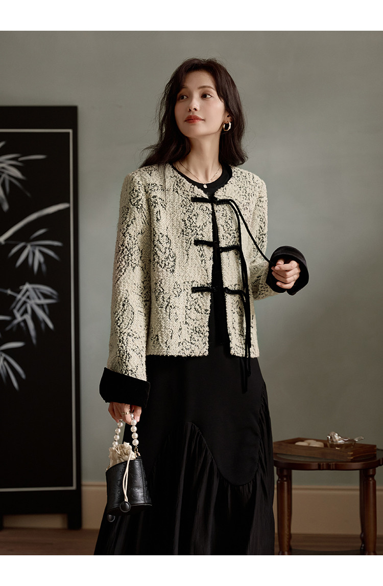 【国风再现】春秋含绵羊毛新中式提花盘扣优雅精致小香风外套女