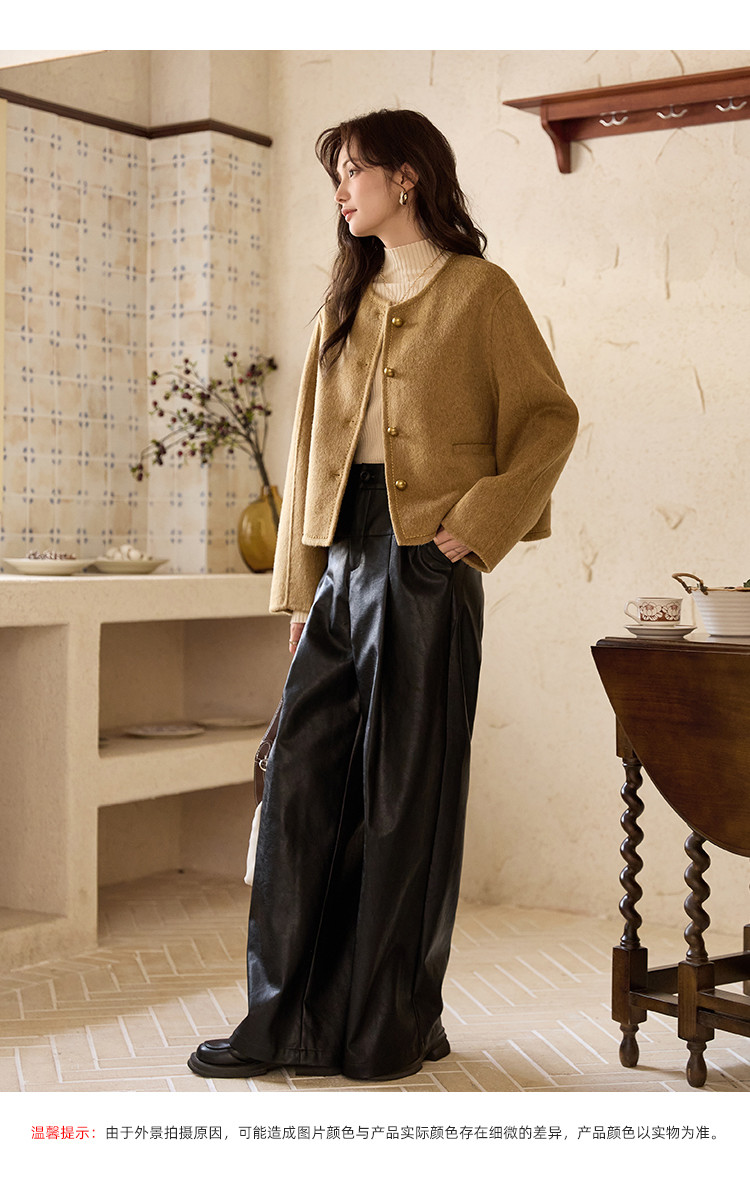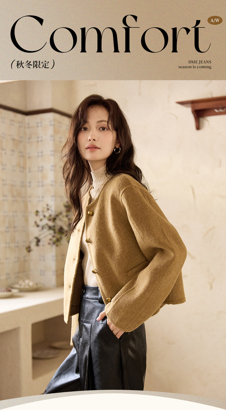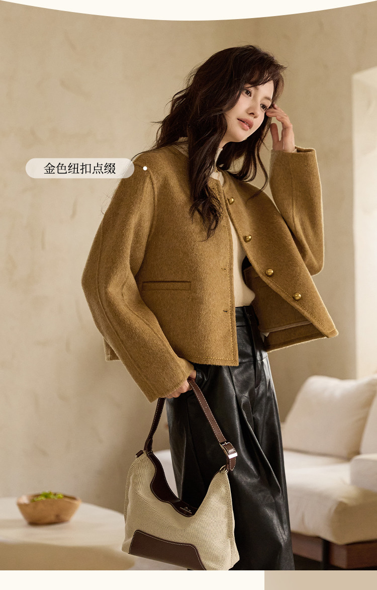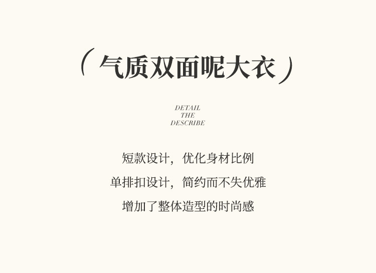 【含绵羊毛双面呢大衣】秋冬气质单排扣保暖厚短款外套大衣女