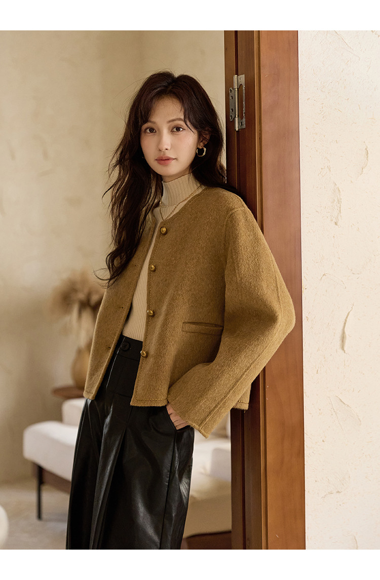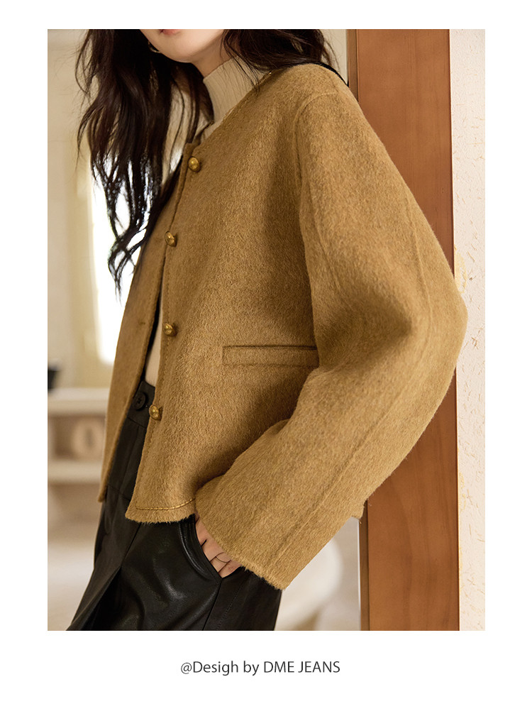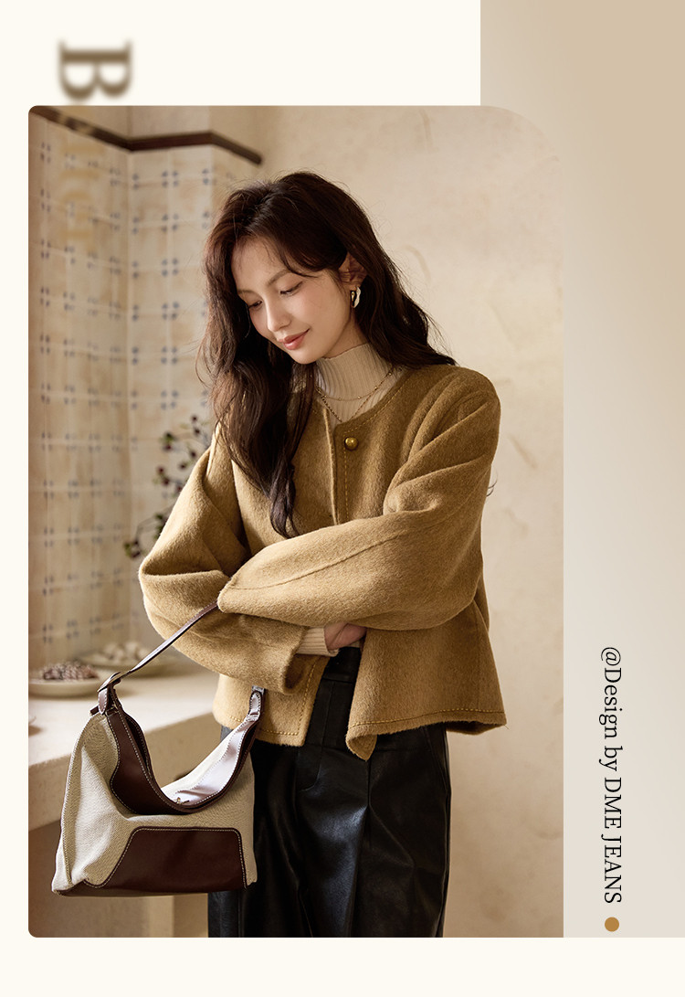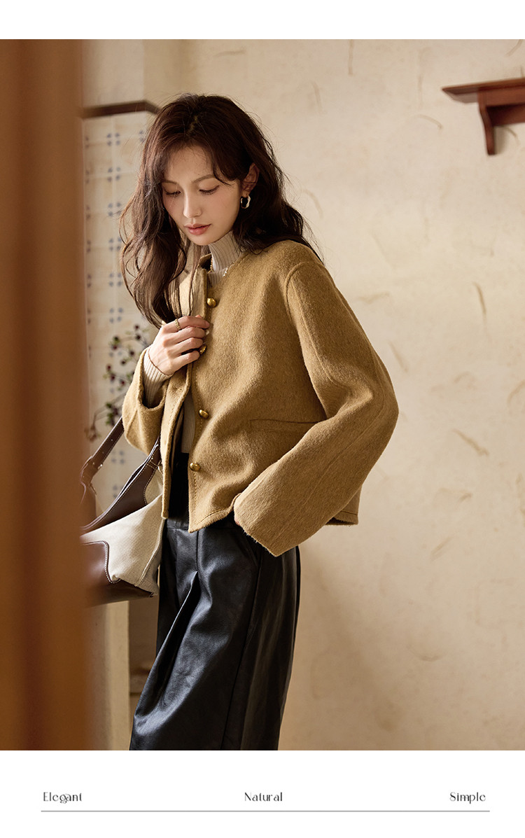 【含绵羊毛双面呢大衣】秋冬气质单排扣保暖厚短款外套大衣女