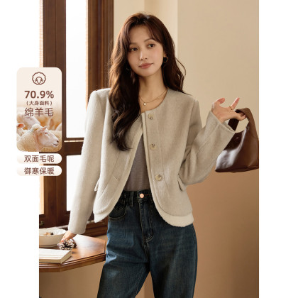 【小香风短款羊毛双面呢大衣】秋冬轻盈保暖大衣双面呢外套女