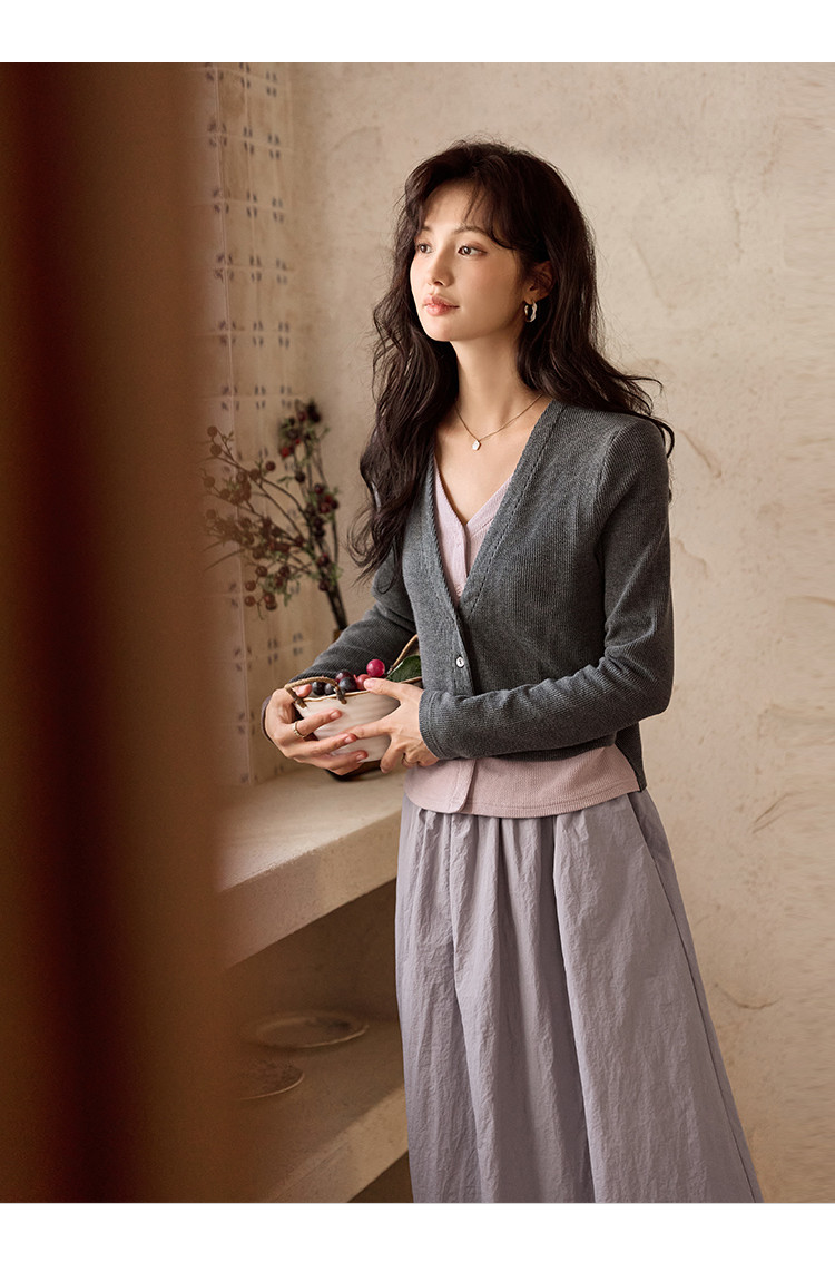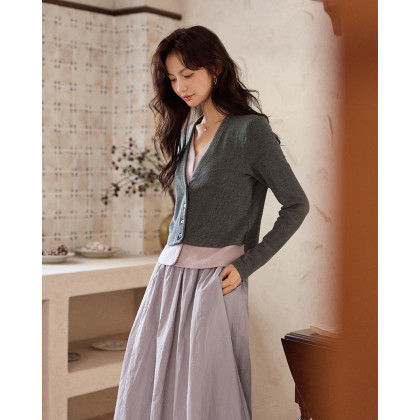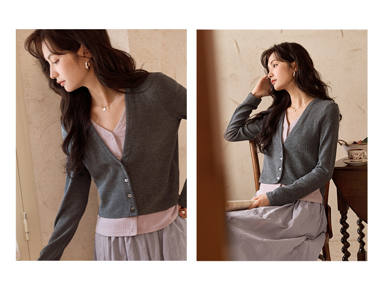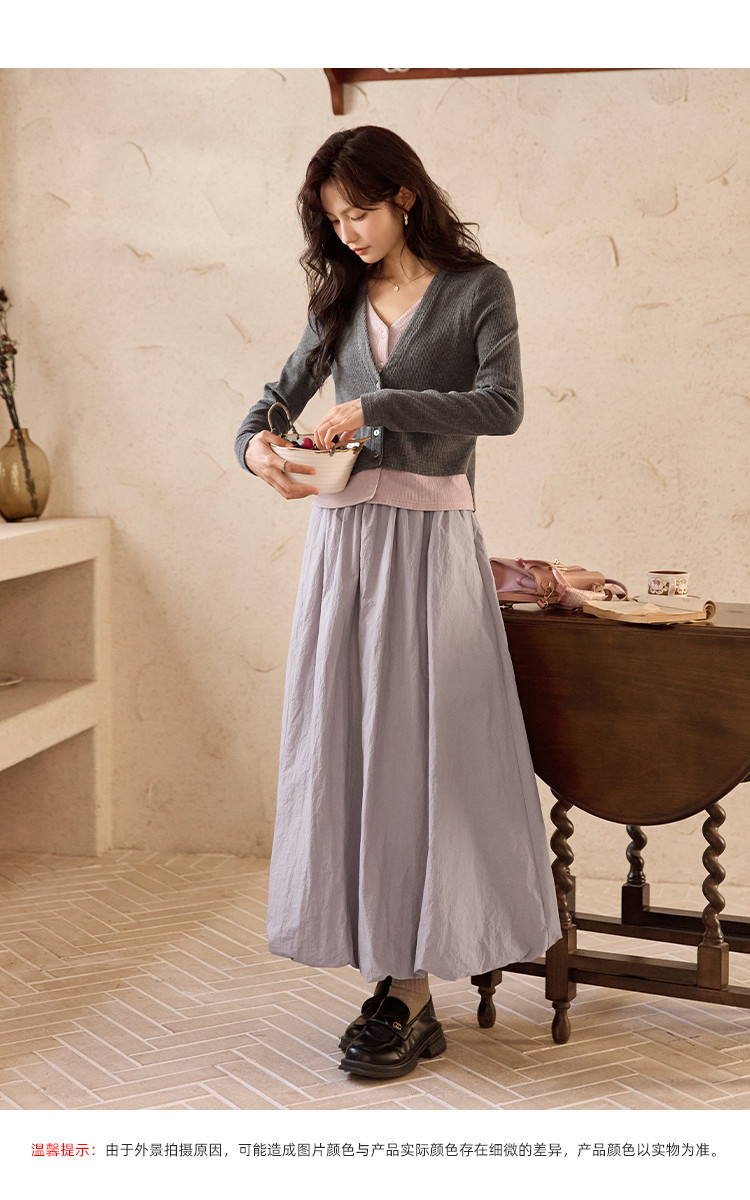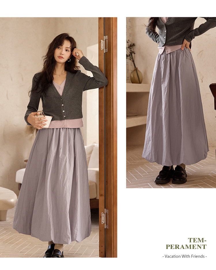 【简约百搭优雅两件套】秋冬灰色简约假两件上衣高腰长裙套装女