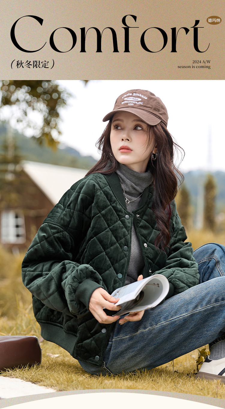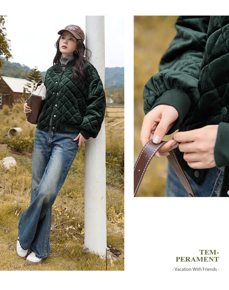 【菱格棉衣】冬慵懒休闲棉服夹克时尚百搭短款女式棉衣