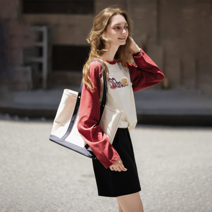 唐狮2026秋季新款长袖T恤女字母撞色插肩袖小熊学生宽松休闲上衣