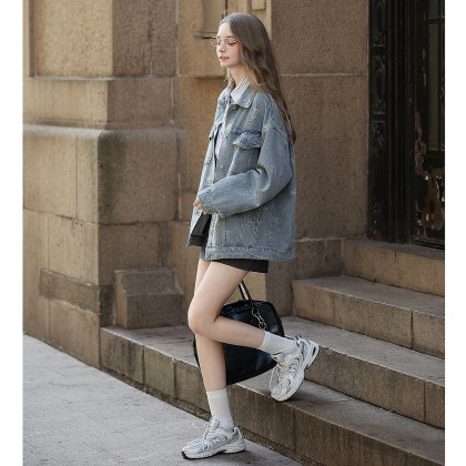 唐狮2026新款春秋季女薄外套百搭高级感甜酷风蝴蝶结满印牛仔外套