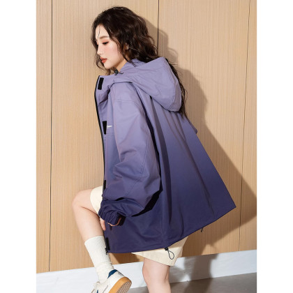 【防水】唐狮2026秋冬季新款渐变连帽外套女冲锋少年上衣休闲运动
