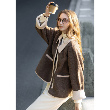 唐狮2025春秋季外套女仿羊羔绒短款上衣灯芯绒小众设计感上衣百搭