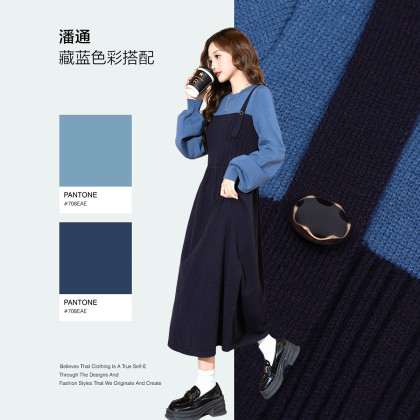 唐狮2026秋冬季女长袖连衣裙圆领背心假两件内搭外穿时尚休闲风