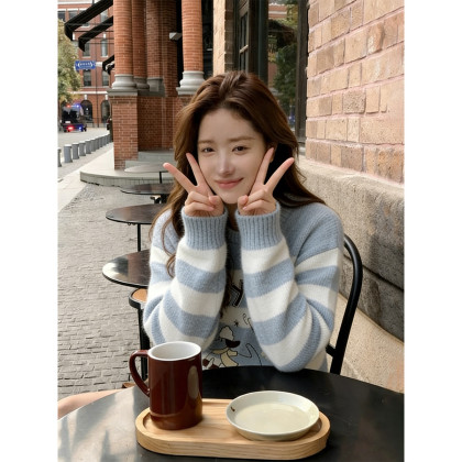 唐狮2026秋季新款毛线衫女圆领条纹套头超好看早秋穿搭甜美毛线衫