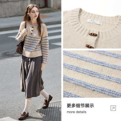 唐狮2026秋冬新款毛衣女半开襟条纹拼接气质韩系氛围感毛线衫