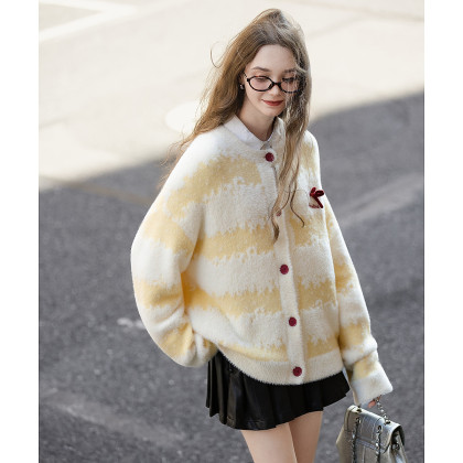 唐狮2026秋冬季女毛衣圆领双色渐变提花可爱蝴蝶结甜美约会穿搭