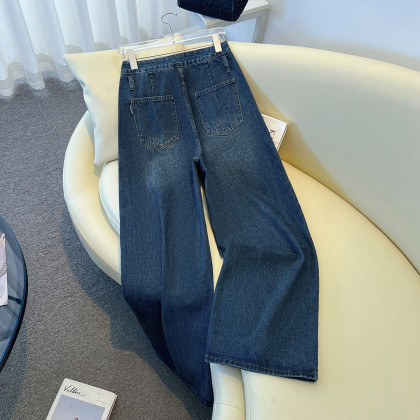 唐狮2026秋冬牛仔长裤女宽松渐变设计感阔腿直筒裤美式复古潮流