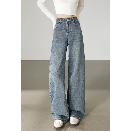 唐狮2026秋季新款女牛仔长裤宽松亮片装饰阔腿高腰显瘦裤子k1