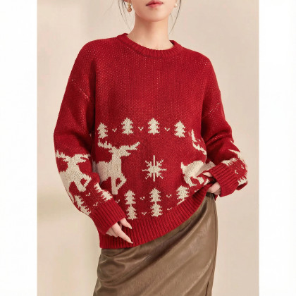 唐狮2026秋冬毛衣情侣款圆领套头费尔岛提花节日氛围毛线衫超好看