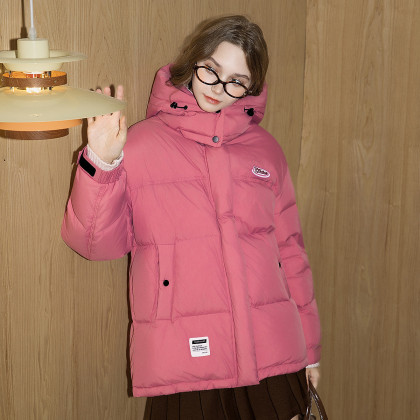 唐狮2026冬季羽绒外套女连帽撞色拼接短款羽绒服面包服保暖超好看