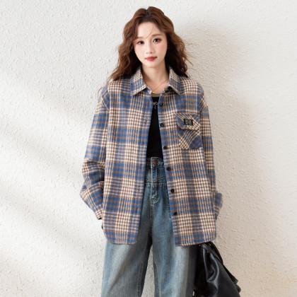 唐狮2025年衬衣女秋季长袖百搭日系宽松遮肚子女翻领复合长袖衬衫