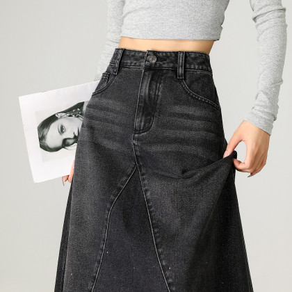 唐狮2026秋冬季新款牛仔半身长裙女百搭伞摆美式复古显瘦超好看