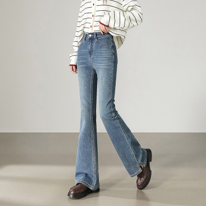 唐狮2025年秋季新款女牛仔裤修身显瘦减龄喇叭裤高腰复古长裤k1