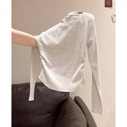唐狮2026春秋季打底衫女长袖净色圆领套头修身收腰设计感独特显瘦