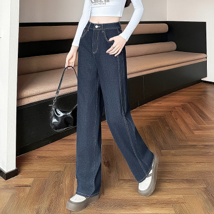 唐狮2026秋冬季女宽松牛仔长裤明线直筒裤子设计感时尚百搭显瘦