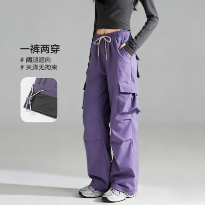 唐狮2026秋冬休闲长裤女宽松休闲风工装运动户外时尚尼龙加绒女裤