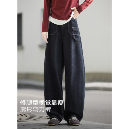 唐狮2026秋冬季女阔腿牛仔长裤宽松直筒休闲长裤百搭高级感女裤