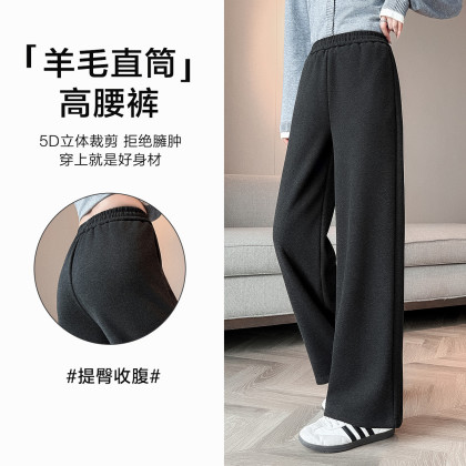 唐狮2026秋冬季休闲长裤女保暖肌理感休闲风黑色窄版阔腿裤百搭