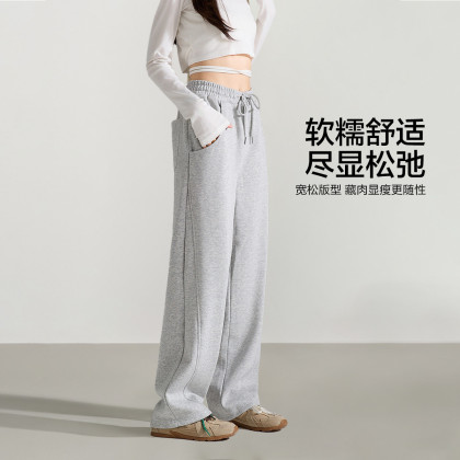 唐狮2026秋冬季休闲长裤女香蕉裤宽松浅麻灰阔腿裤显瘦时尚百搭