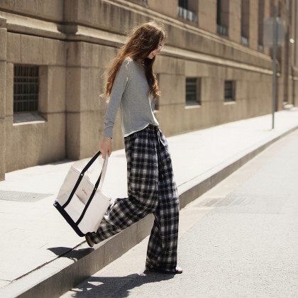 唐狮格子裤女2026秋季新款阔腿裤女高腰松弛感休闲垂感拖地裤子J1