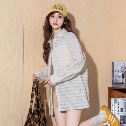 唐狮2025春秋季新款长袖衬衫女肌理感长袖上衣宽松百搭翻领外套女
